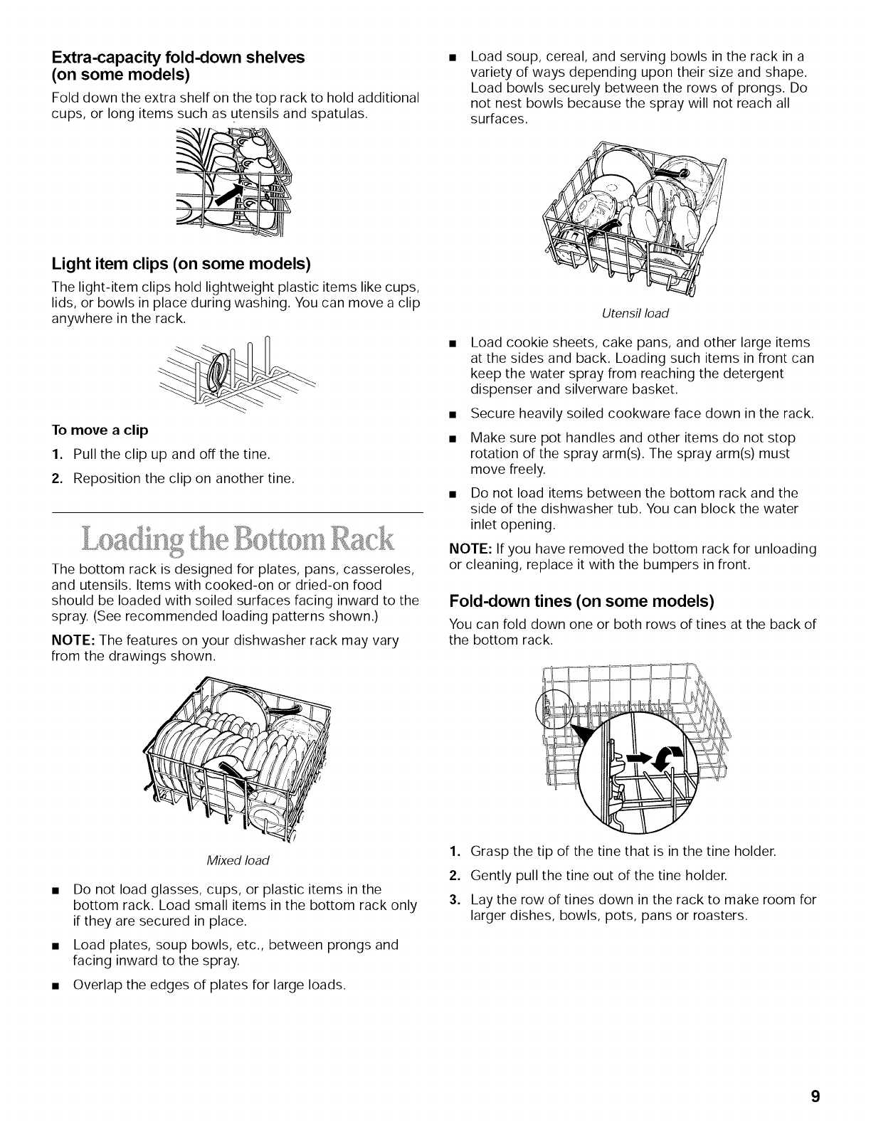 Loading the Bottom Rack ............................................... 9