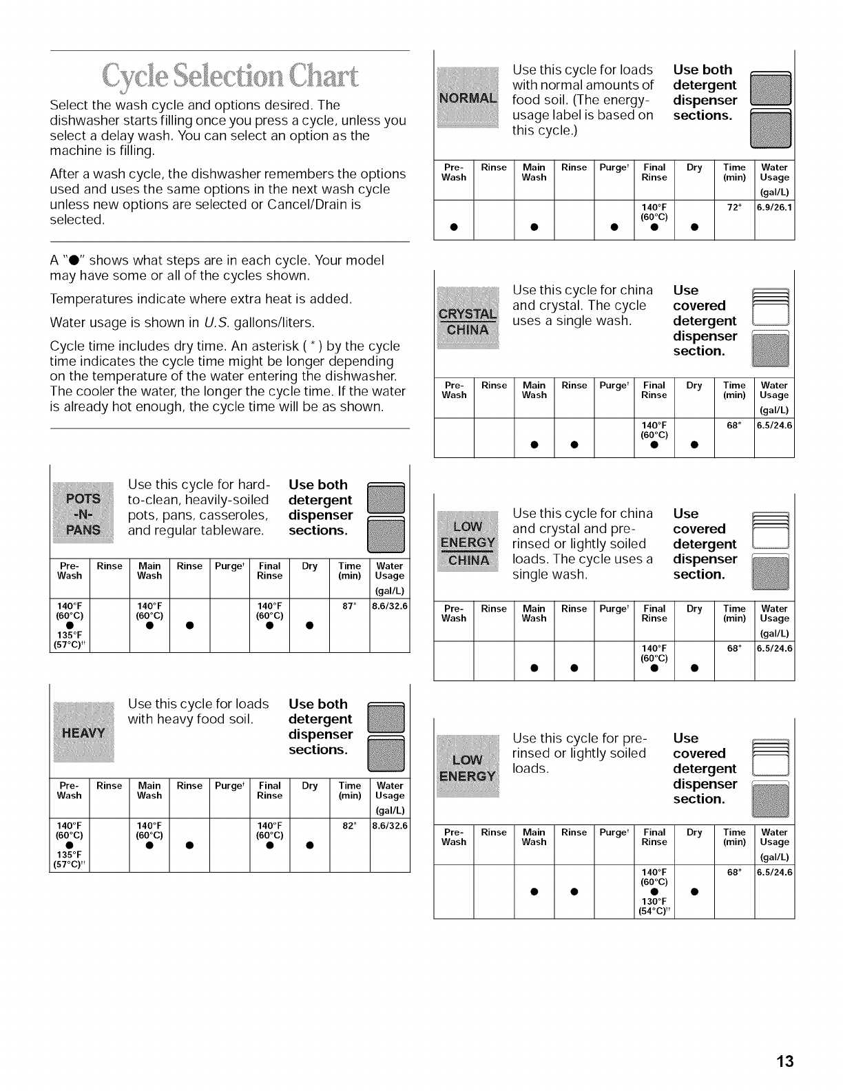 Cycle Selection Chart .................................................... 13