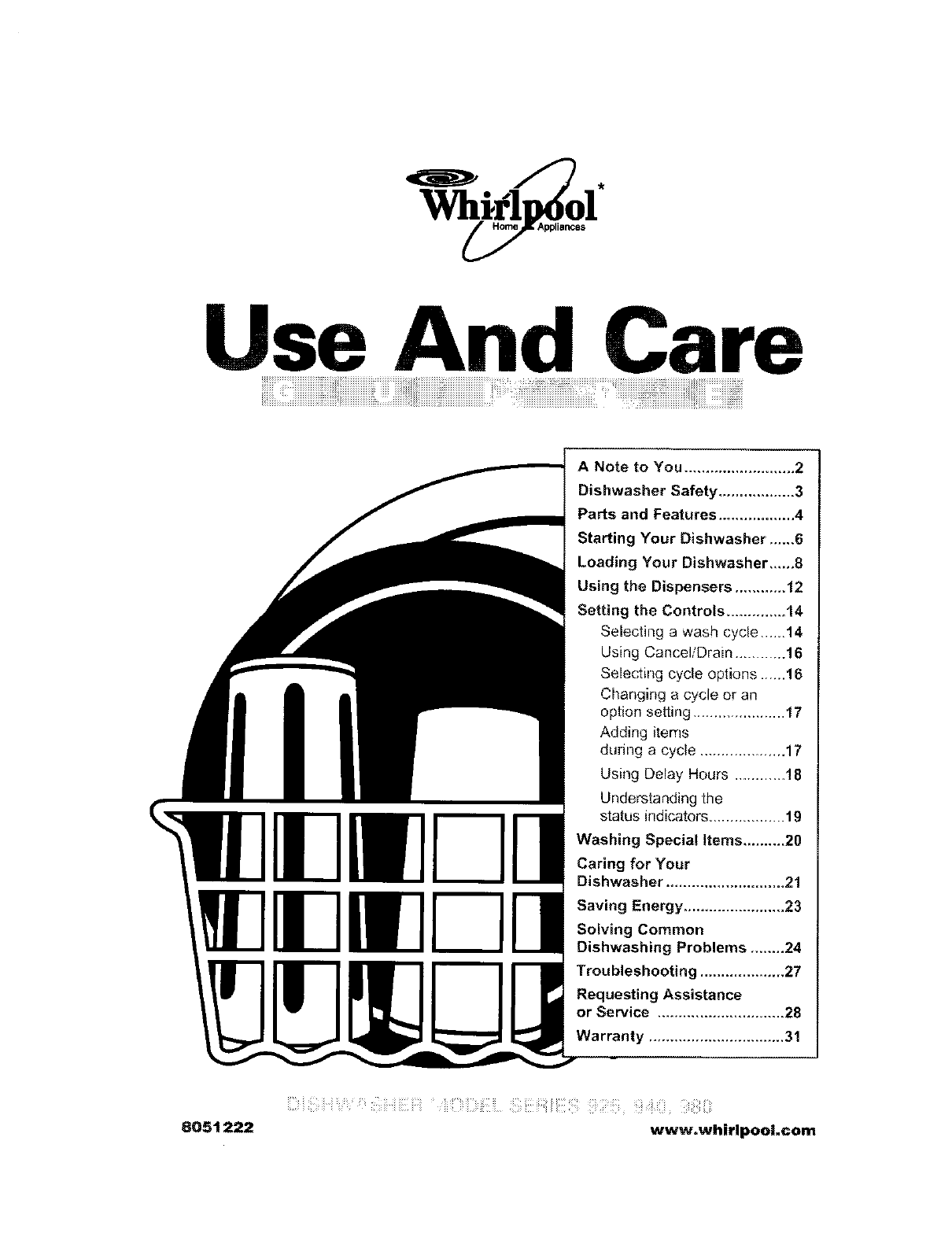 Whirlpool GU980SCGB3 User Manual DISHWASHER Manuals And Guides L0402116