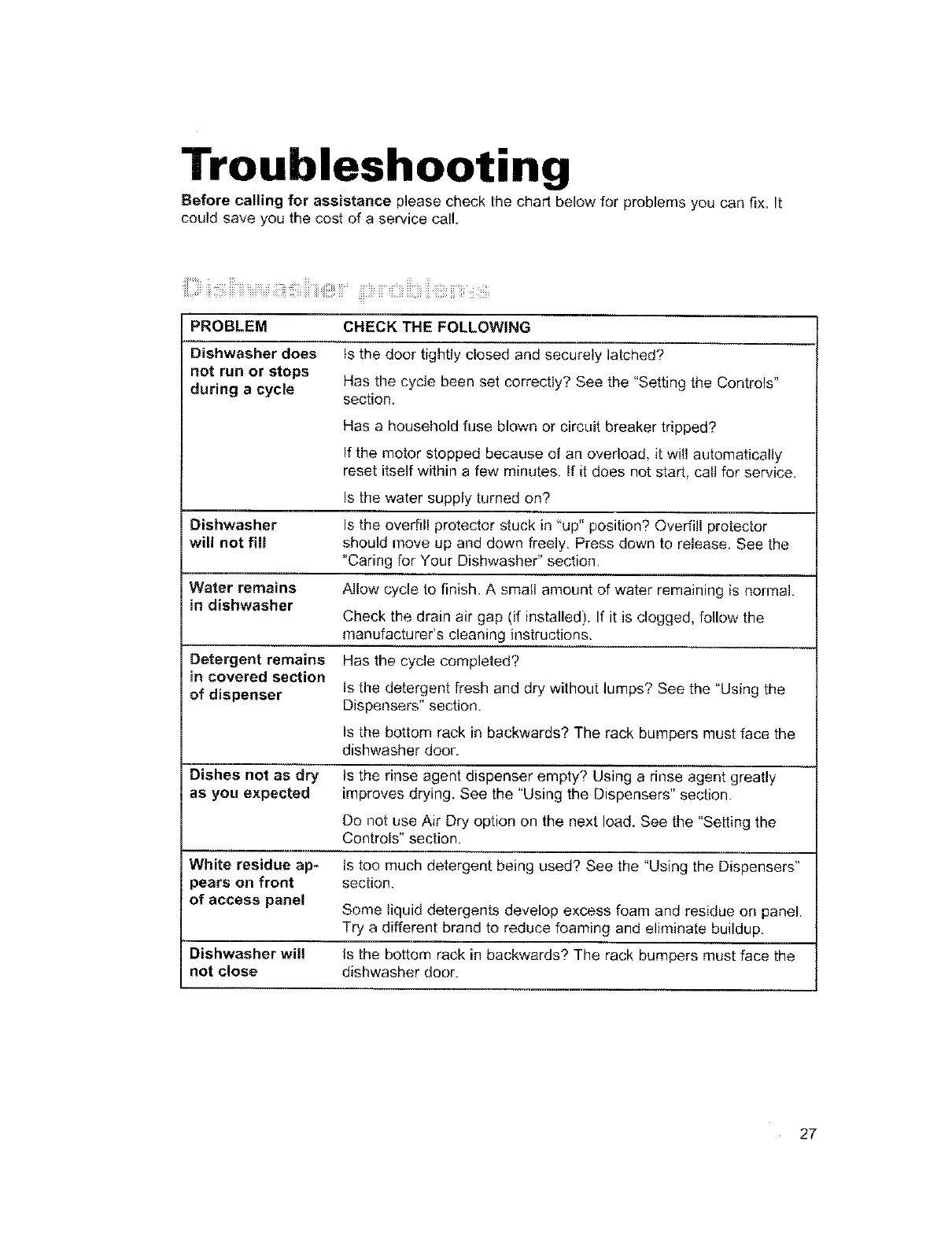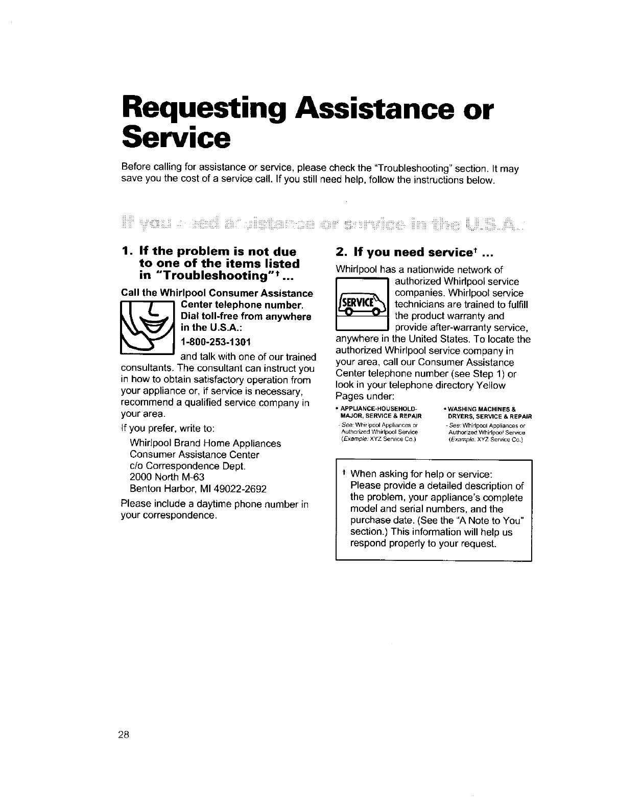"Troubleshooting," additional help is available by calling our Consumer Assistance Center