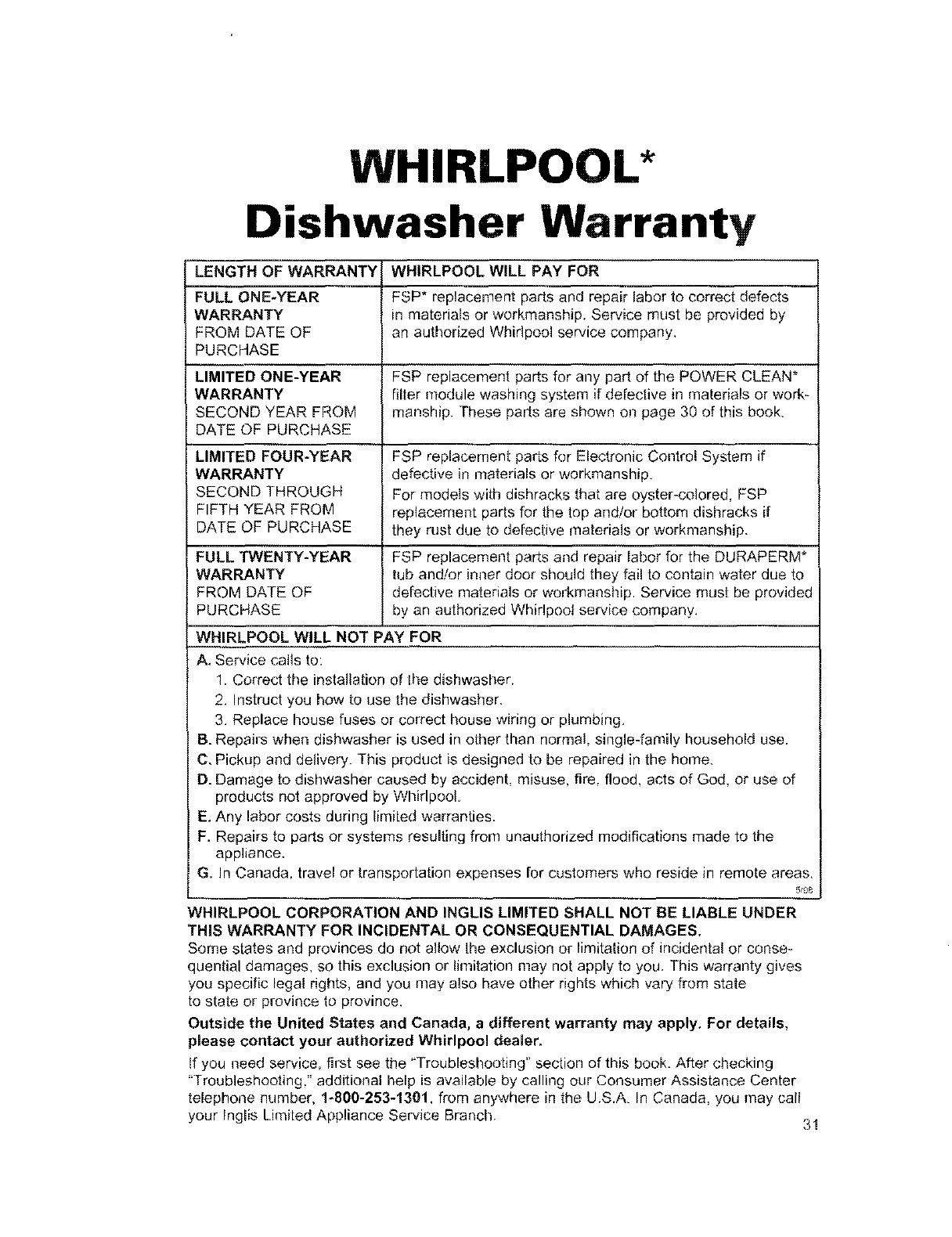 WHIRLPOOL CORPORATION AND INGLIS LIMITED SHALL NOT BE LIABLE UNDER
