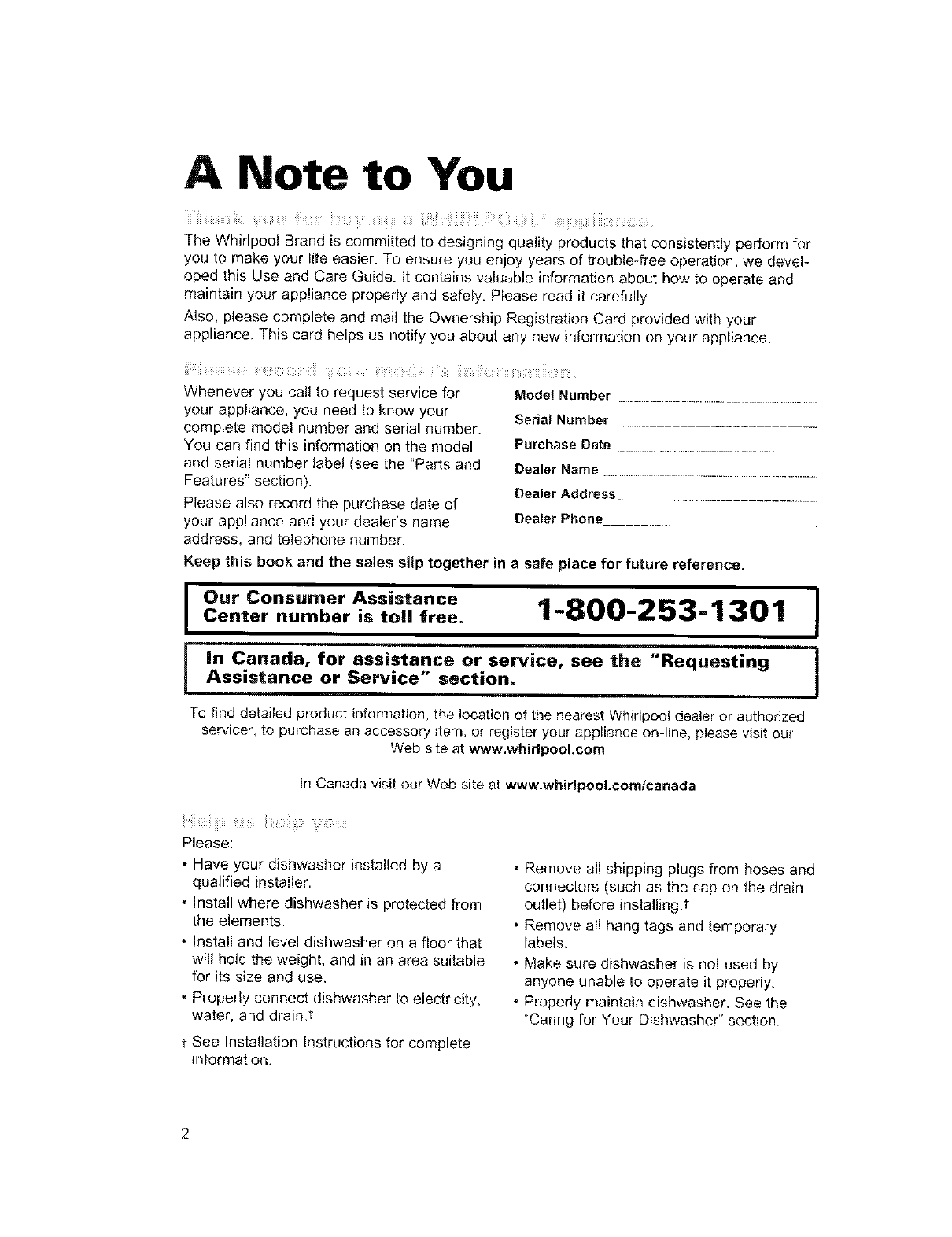 To find detailed product information, the location of the nearest Whirlpool dealer or authorized