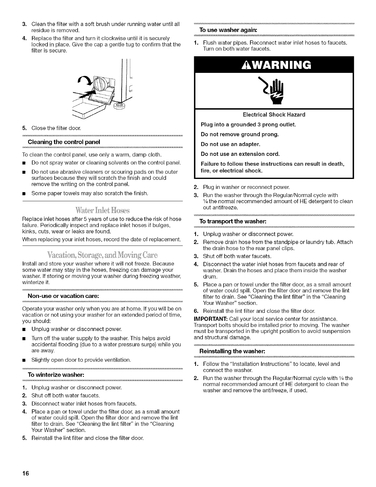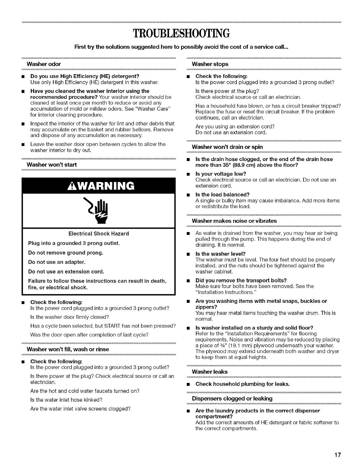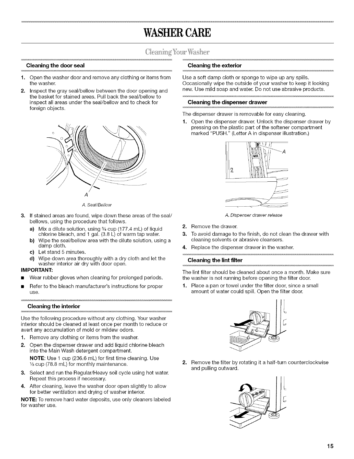WASHER CARE ............................................................................ 15