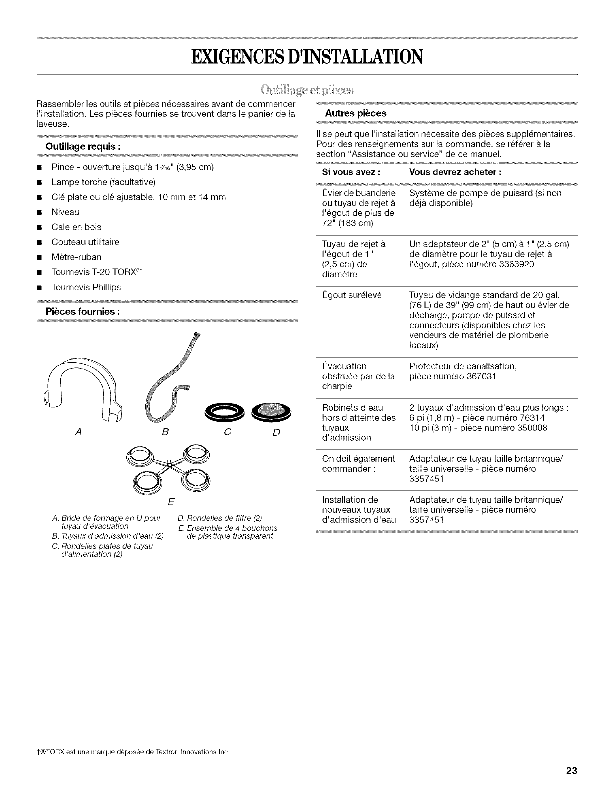 Outillage et pieces ...................................................................... 23