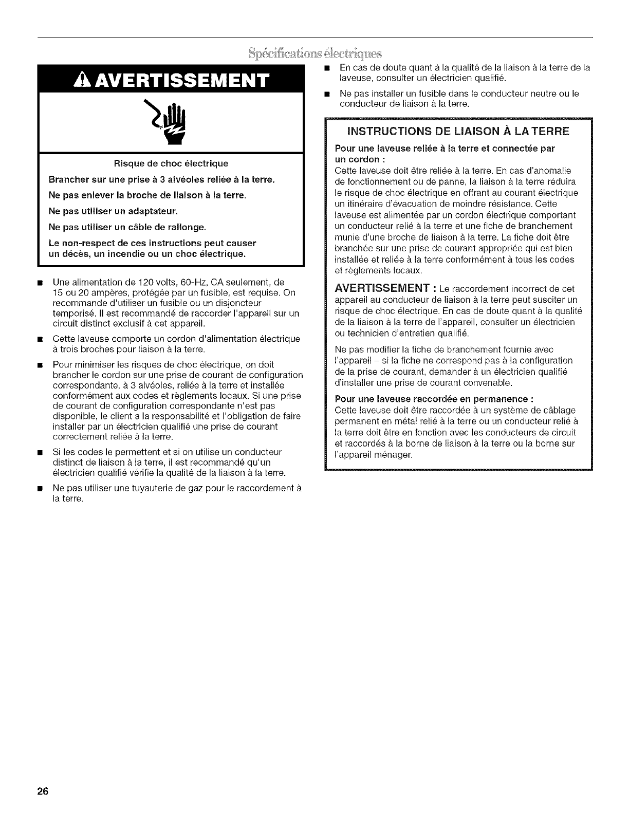 Specifications electriques .......................................................... 26