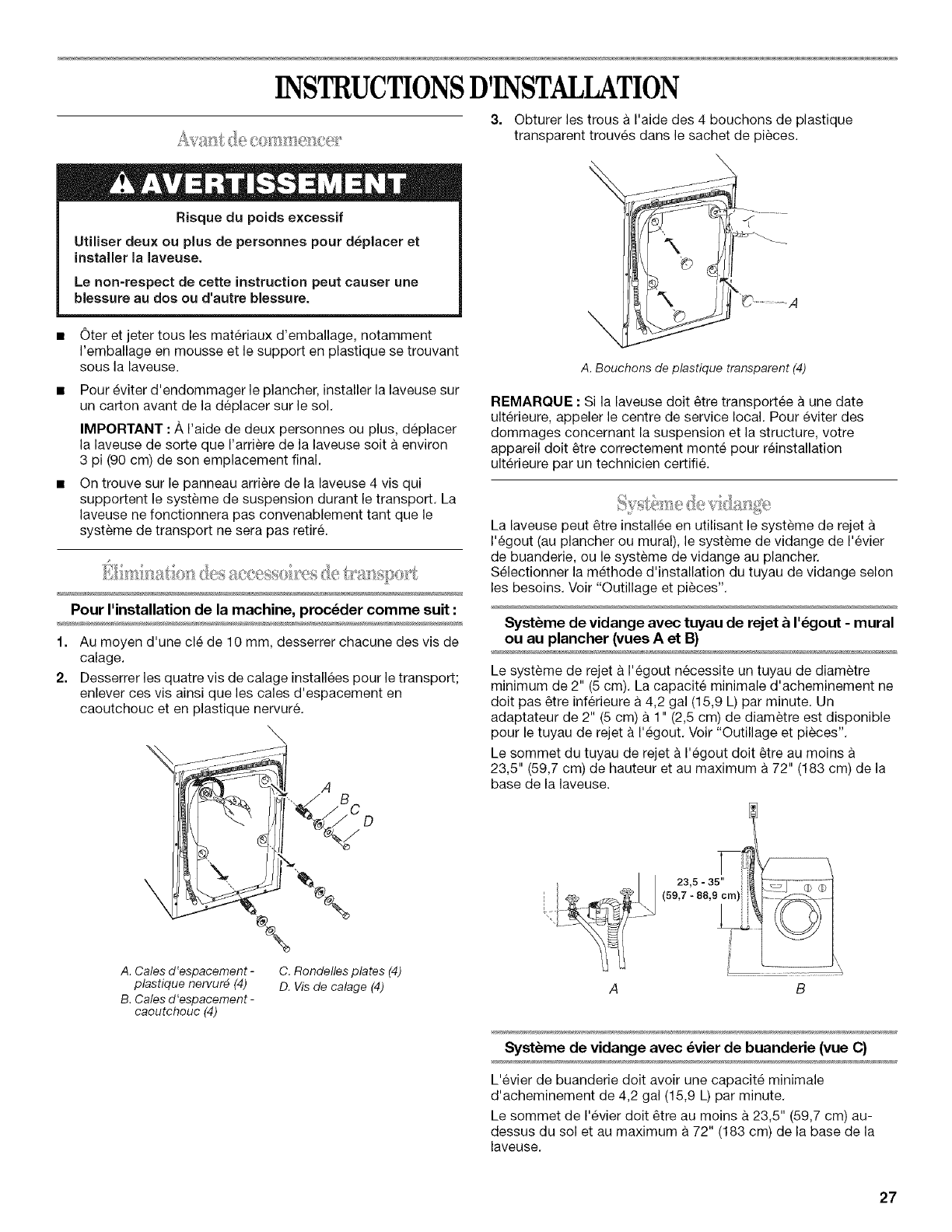 INSTRUCTIONS D'INSTALLATION ............................................. 27