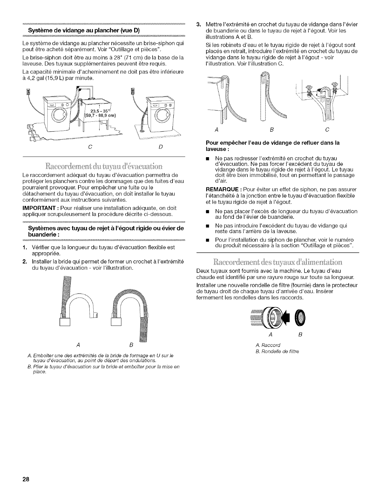 Raccordement du tuyau d'evacuation ....................................... 28