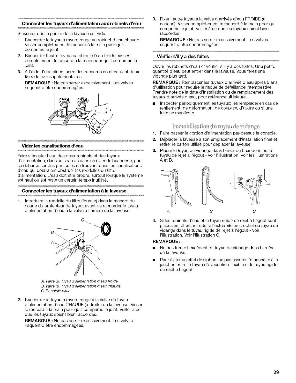Raccordement des tuyaux d'alimentation ................................. 28