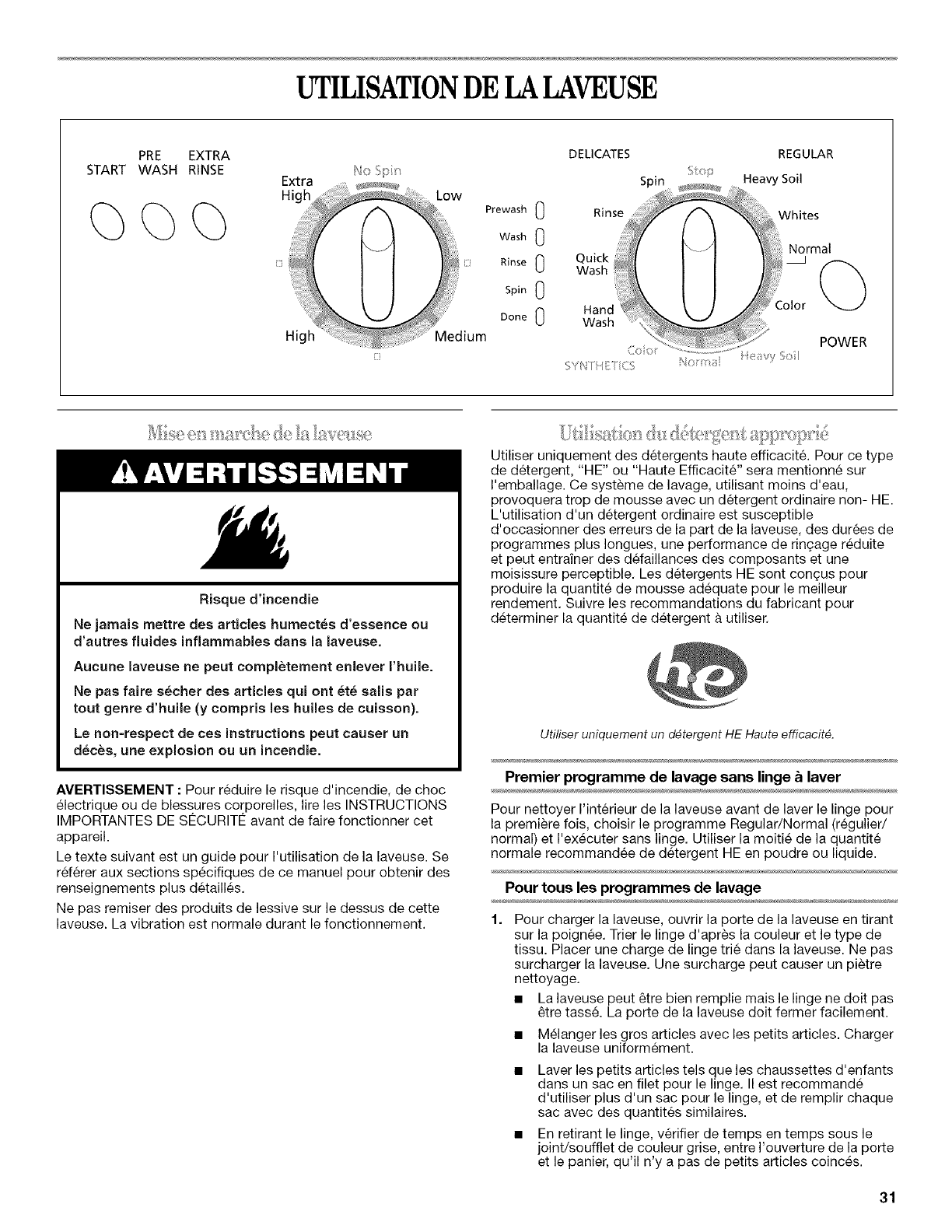 Mise en marche de la laveuse .................................................... 31