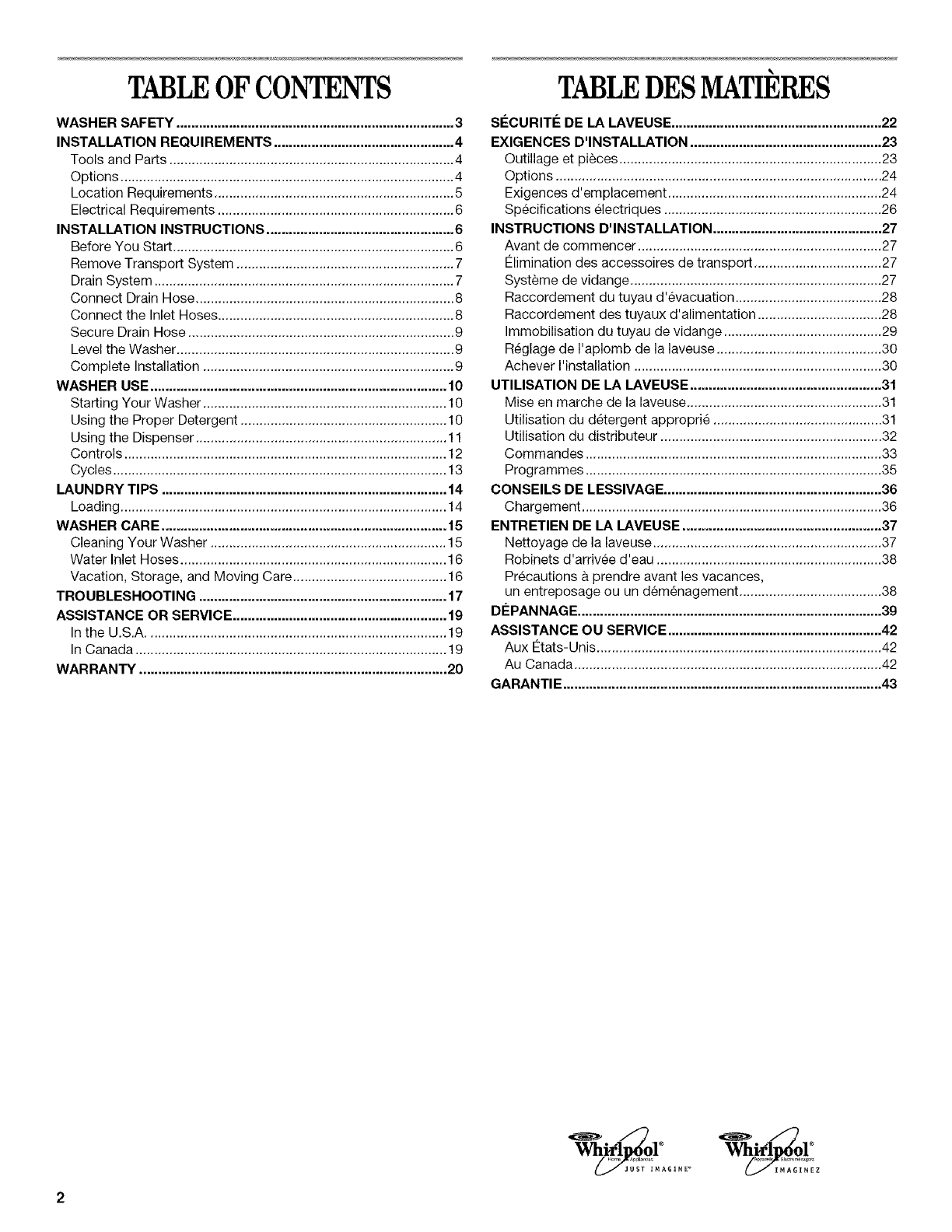 WASHER SAFETY .......................................................................... 3