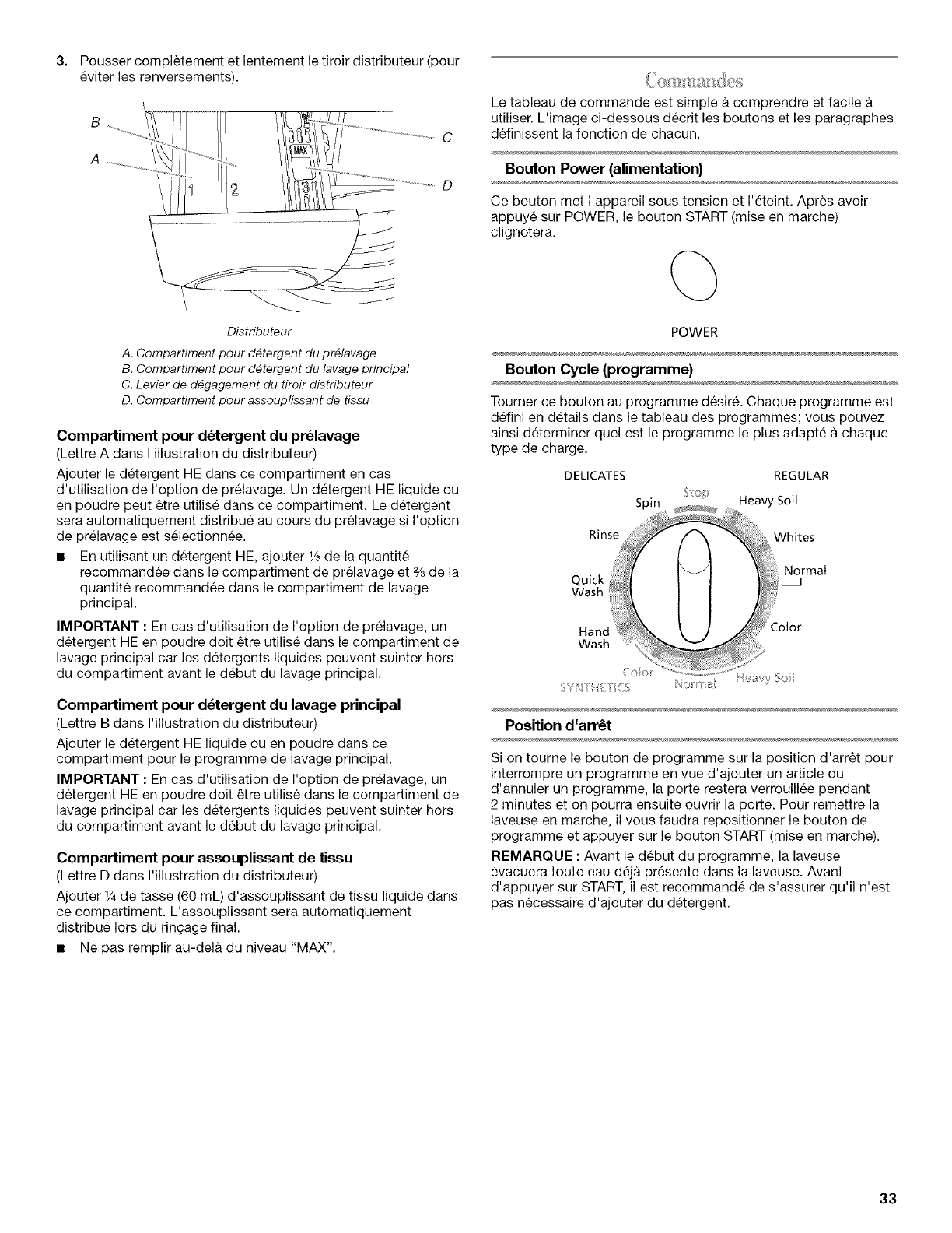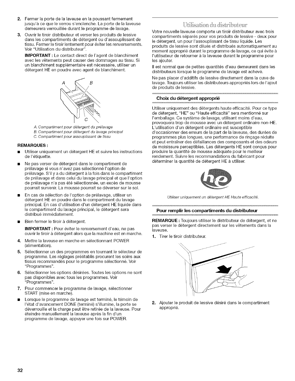 Utilisation du detergent approprie ............................................. 31