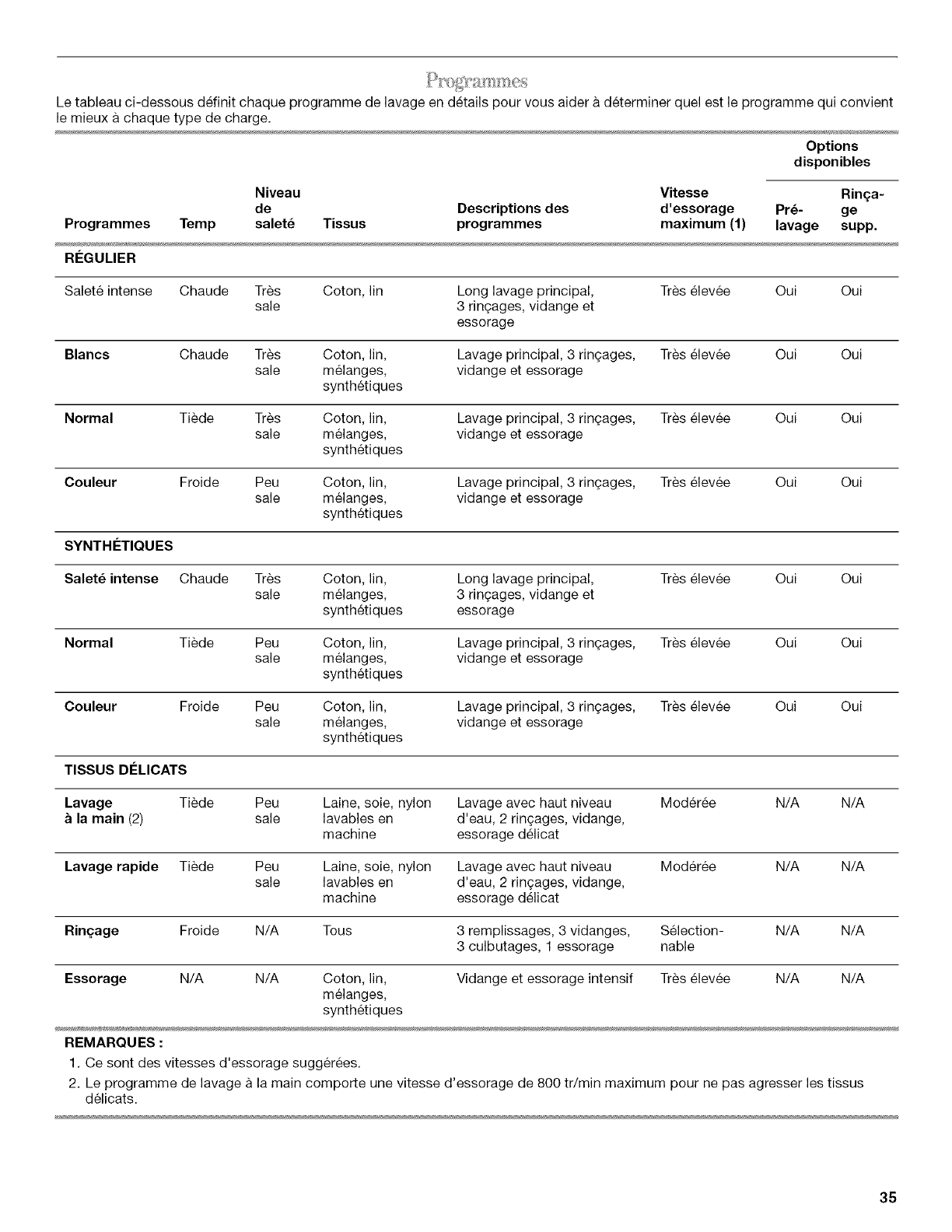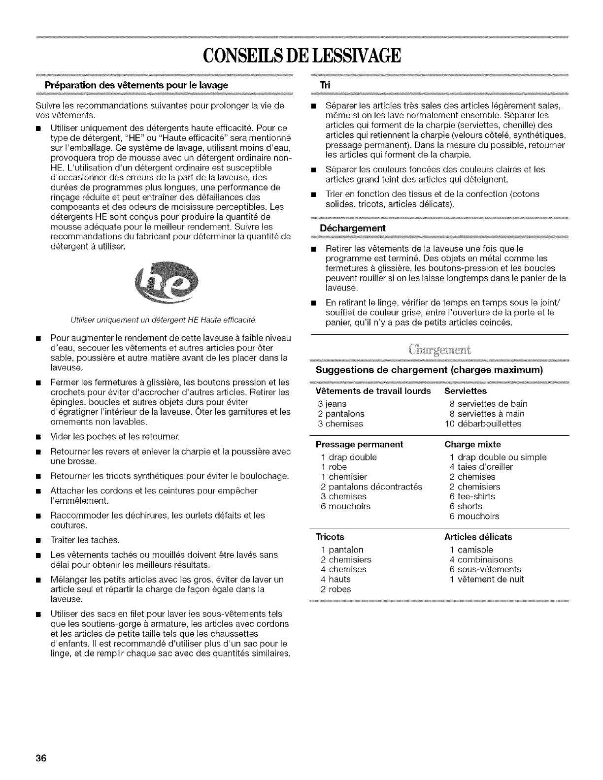 CONSEILS DE LESSIVAGE .......................................................... 36