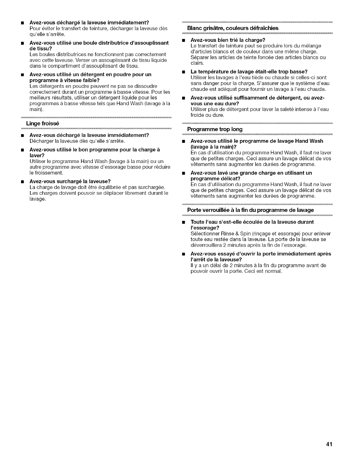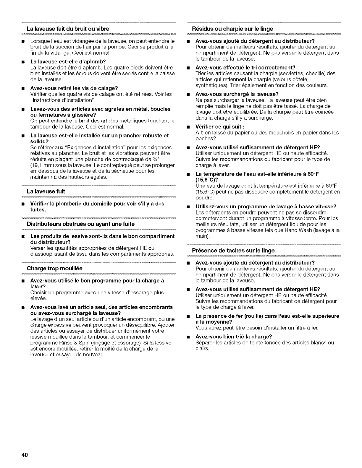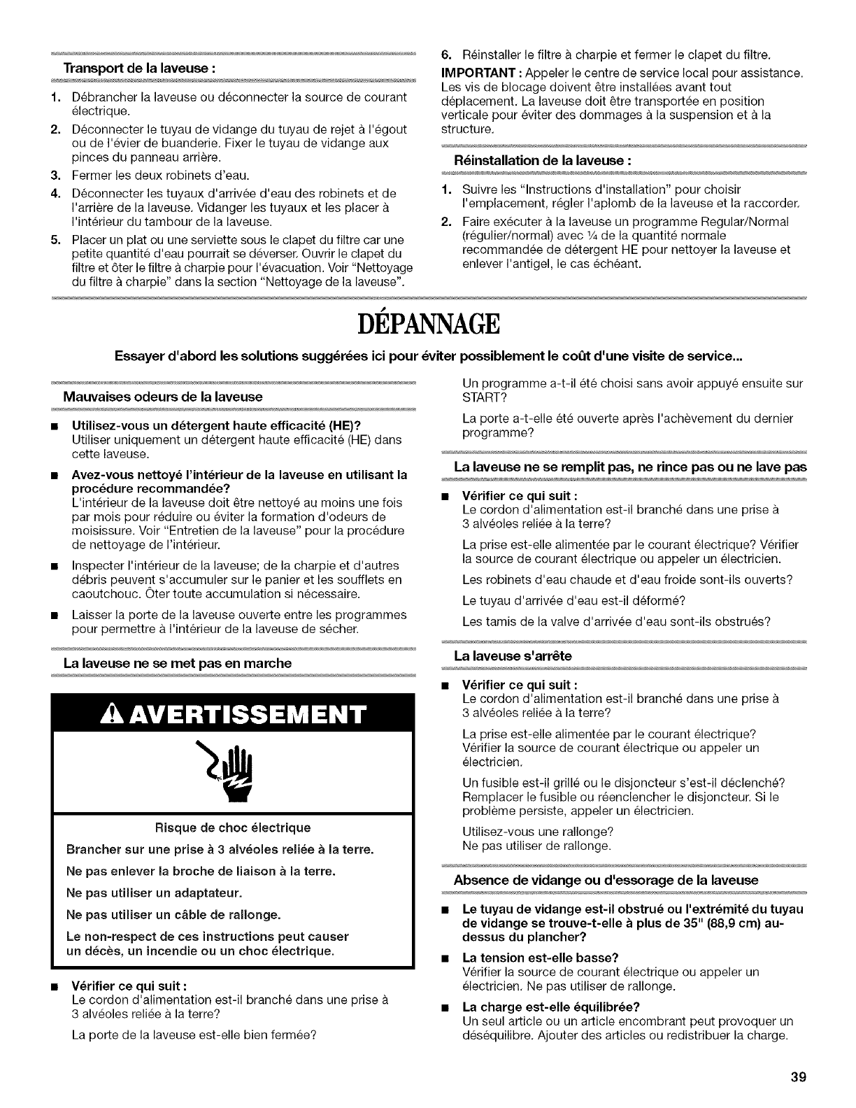 Nettoyage de la laveuse ............................................................. 37