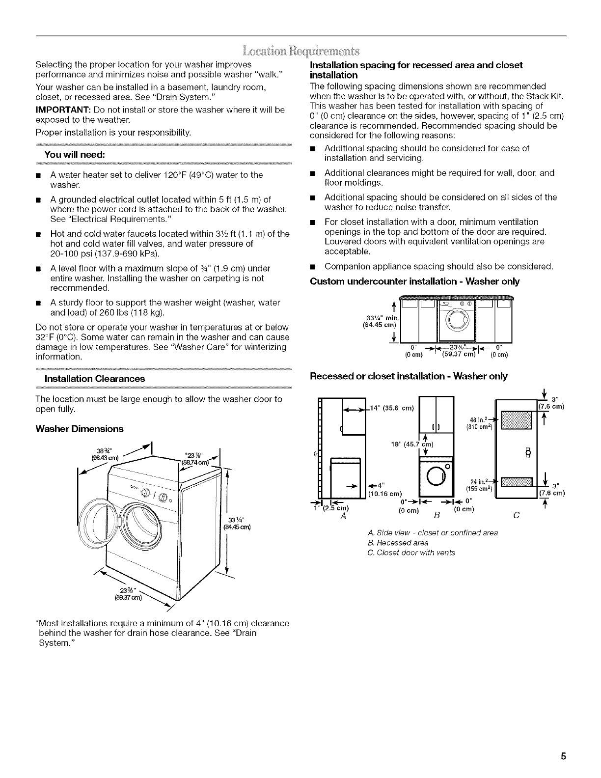 Water Inlet Hoses ....................................................................... 16