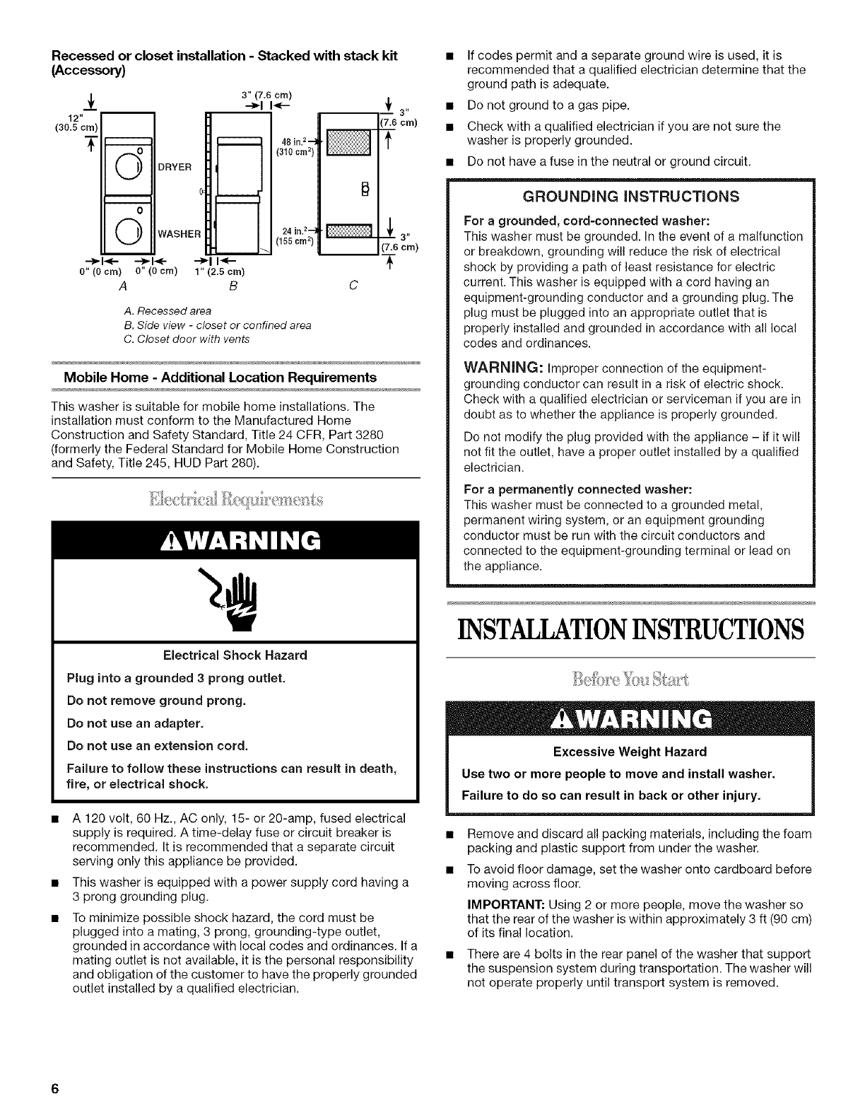 INSTALLATION INSTRUCTIONS .................................................. 6