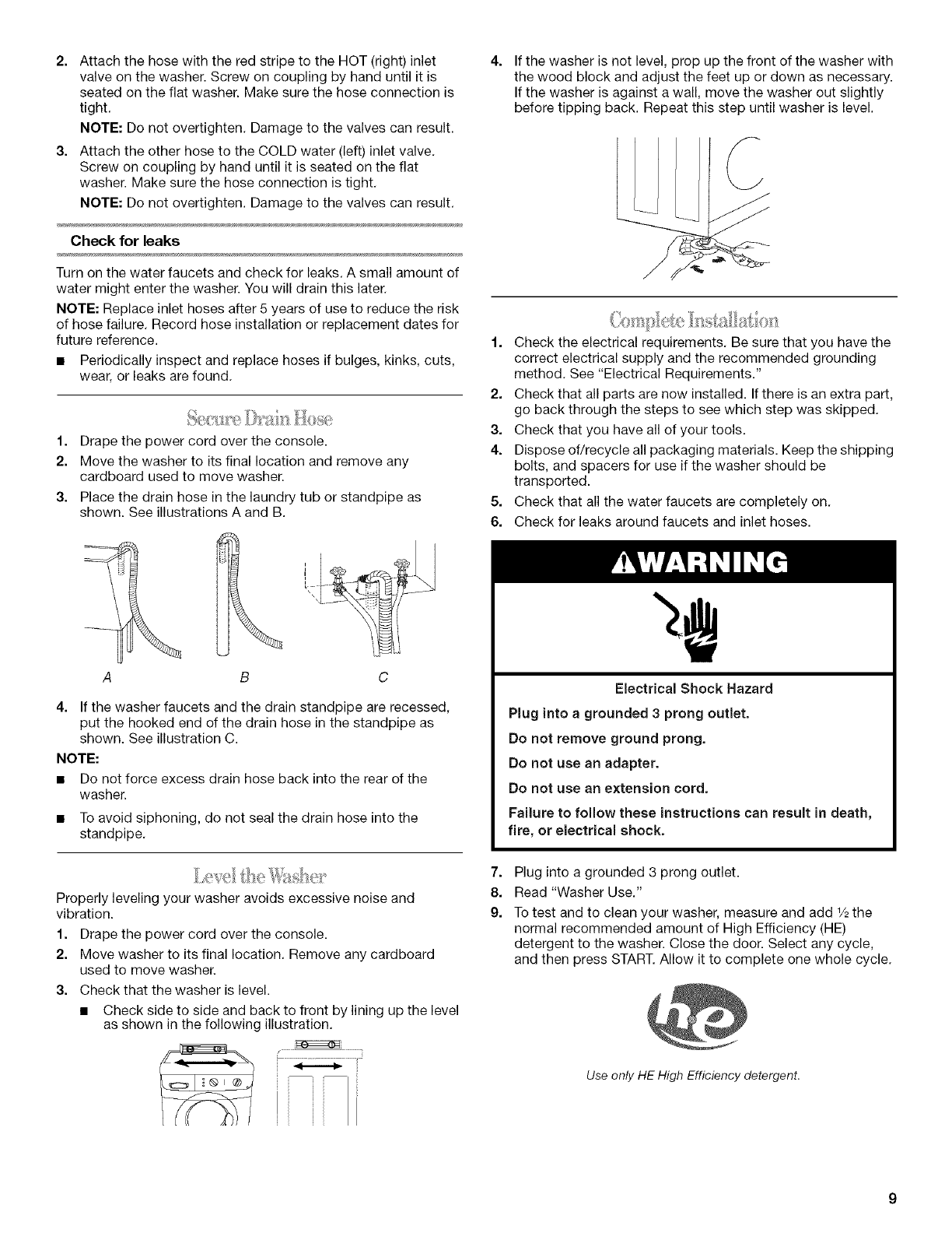 Level the Washer .......................................................................... 9