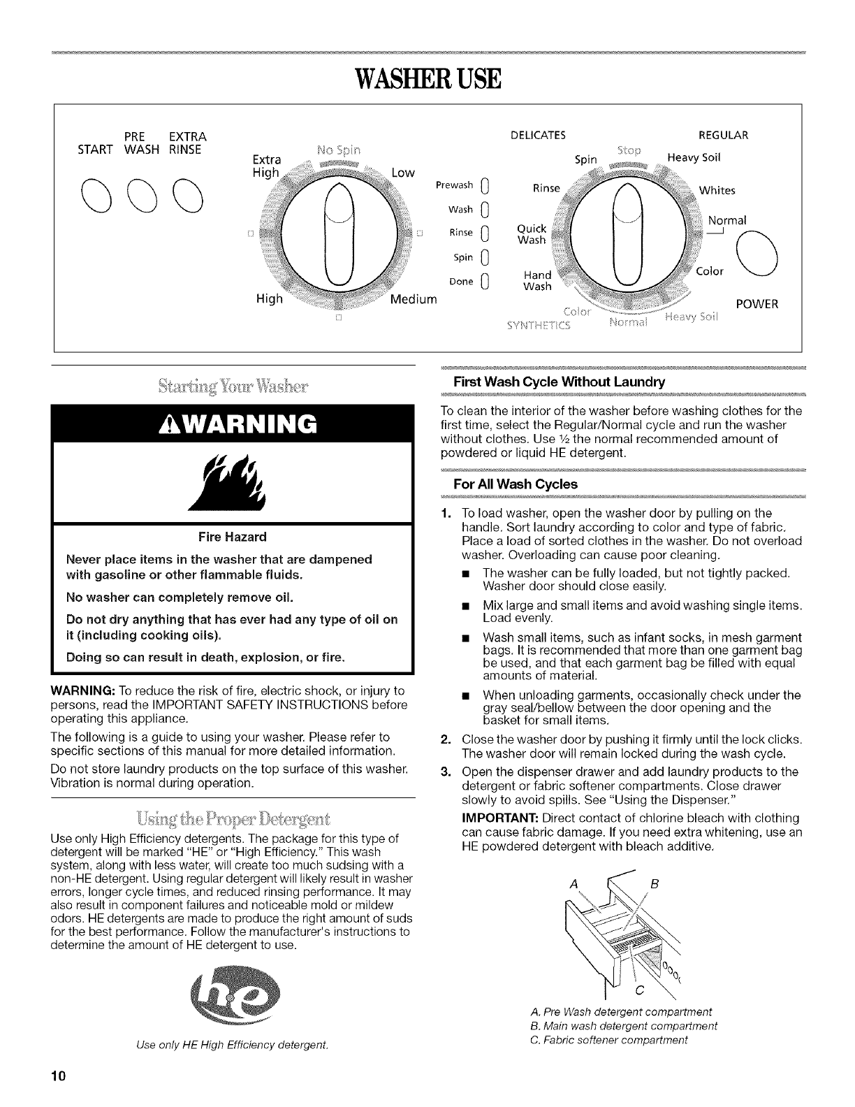 WASHER USE ............................................................................... 10