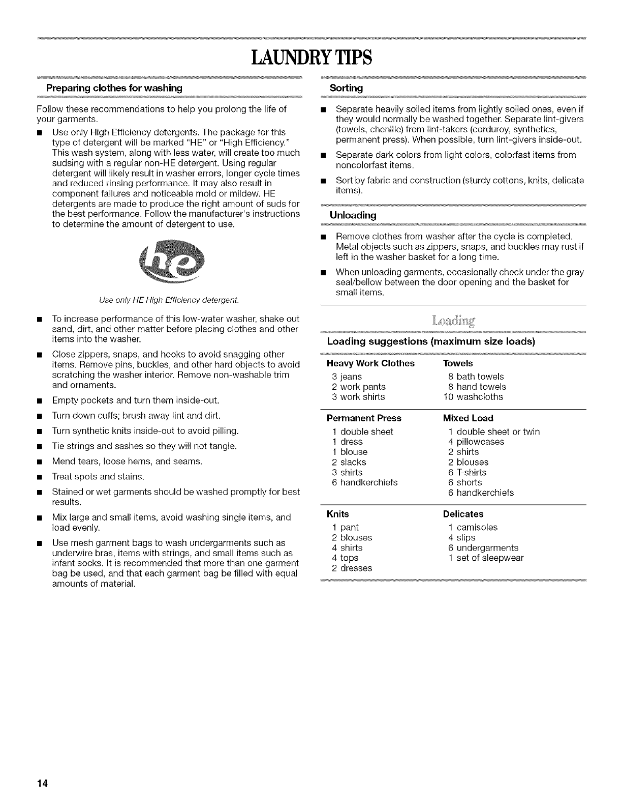 LAUNDRY TIPS ............................................................................ 14