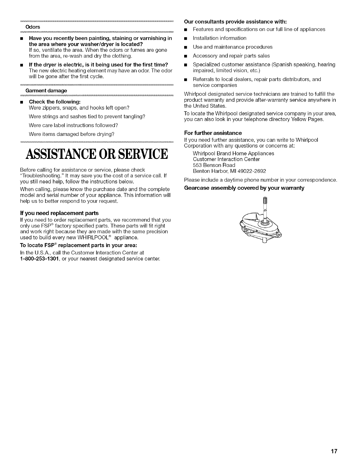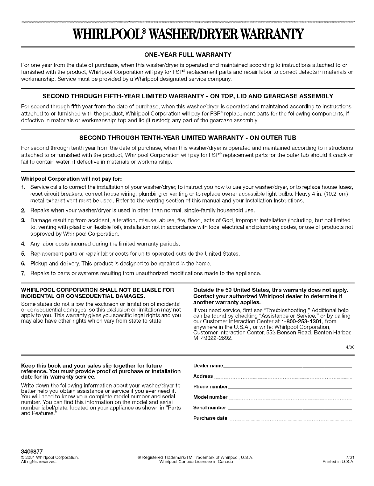 WHIRl,POOL®WASHER/DRYERWARRANTY