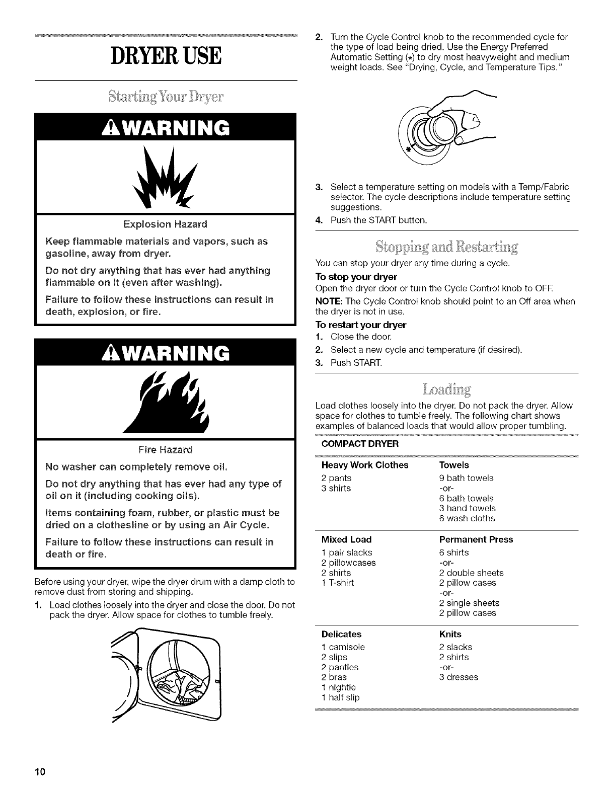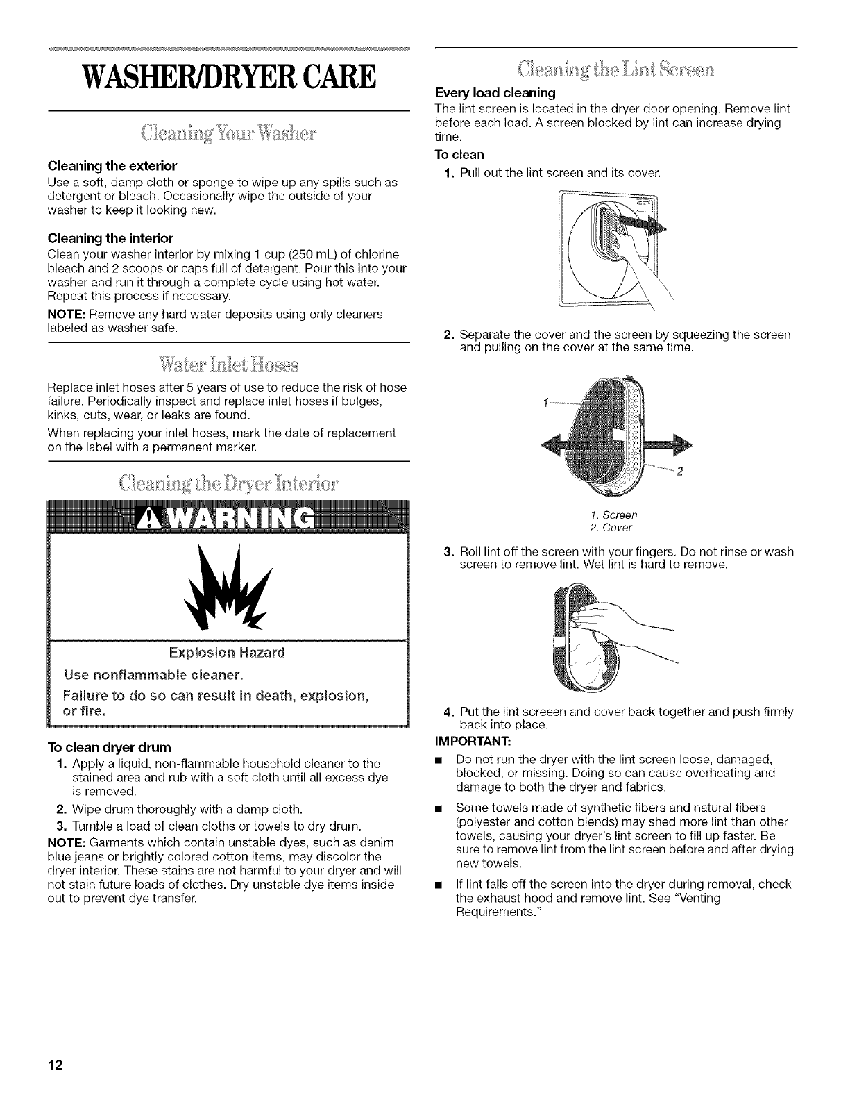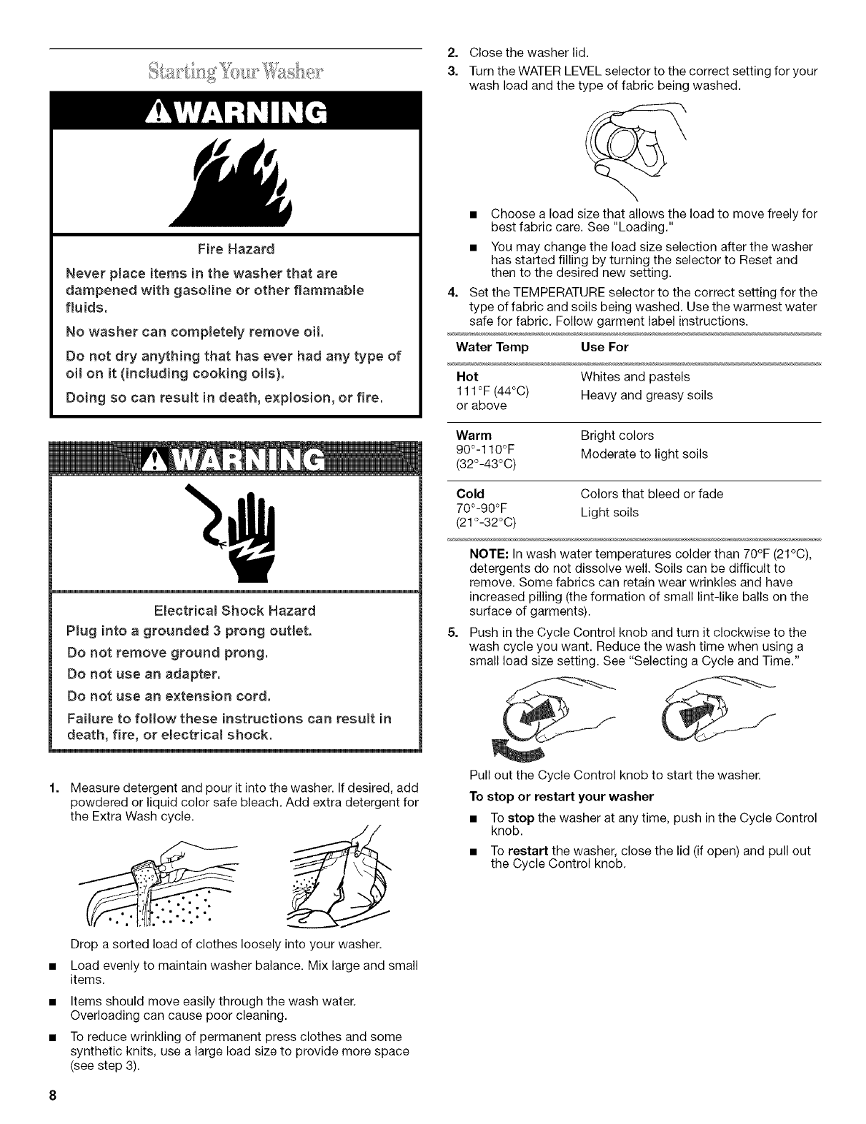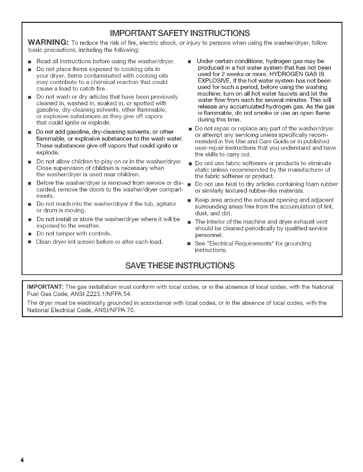 WARNUNG: To reduce the risk of fire, e(ectdc shock, or injury to persons when using the washer/dryer, foUow