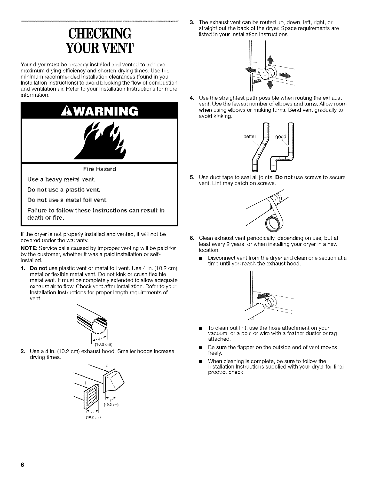 metal exhaust vent must be used. Refer to the venting section of this manual and your Installation Instructions.