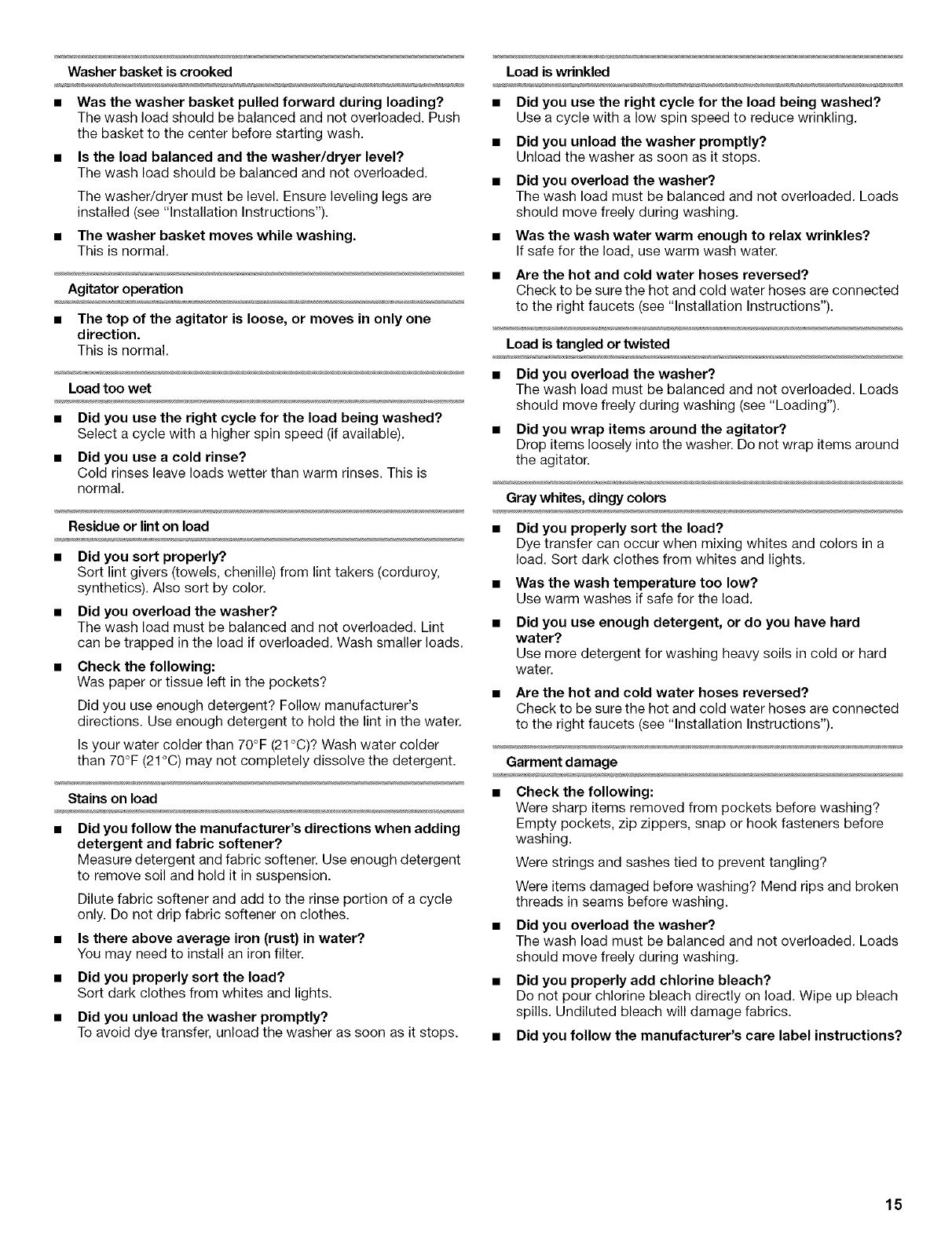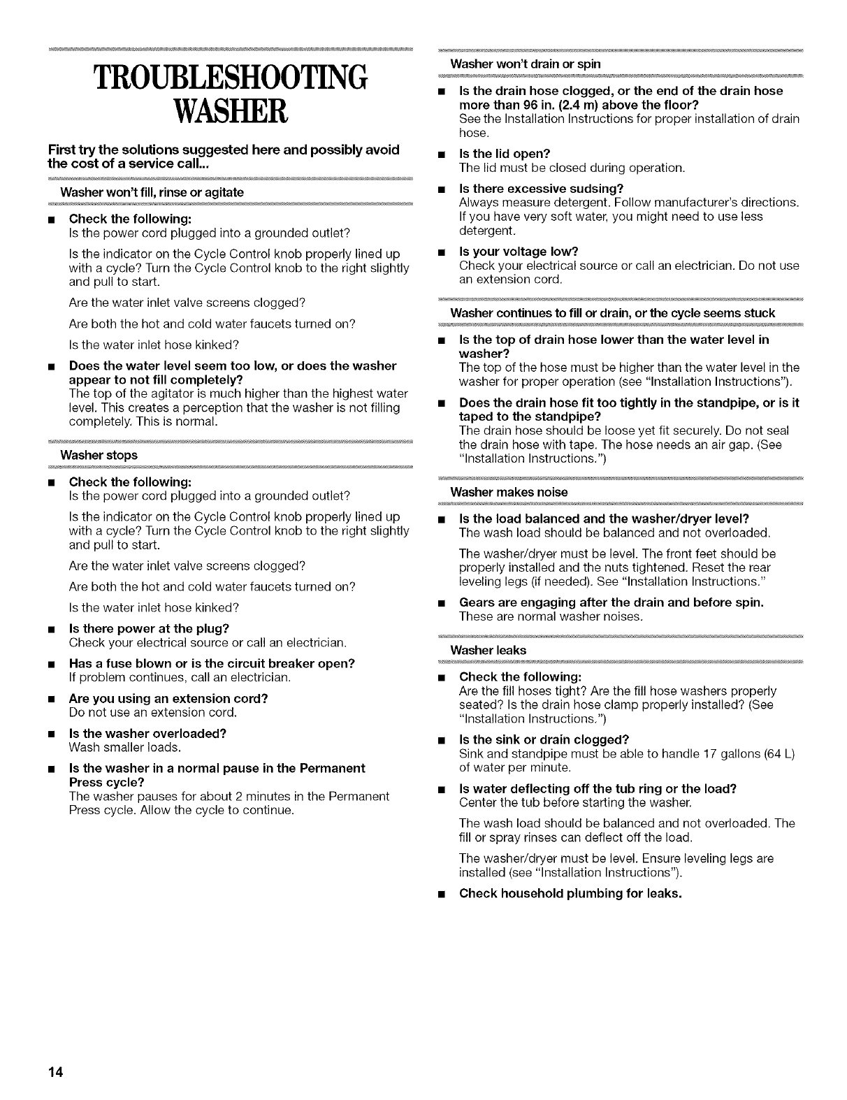 1. Service calls to correct the installation of your washer/dryer, to instruct you how to use your washer/dryer, or to replace house fuses,