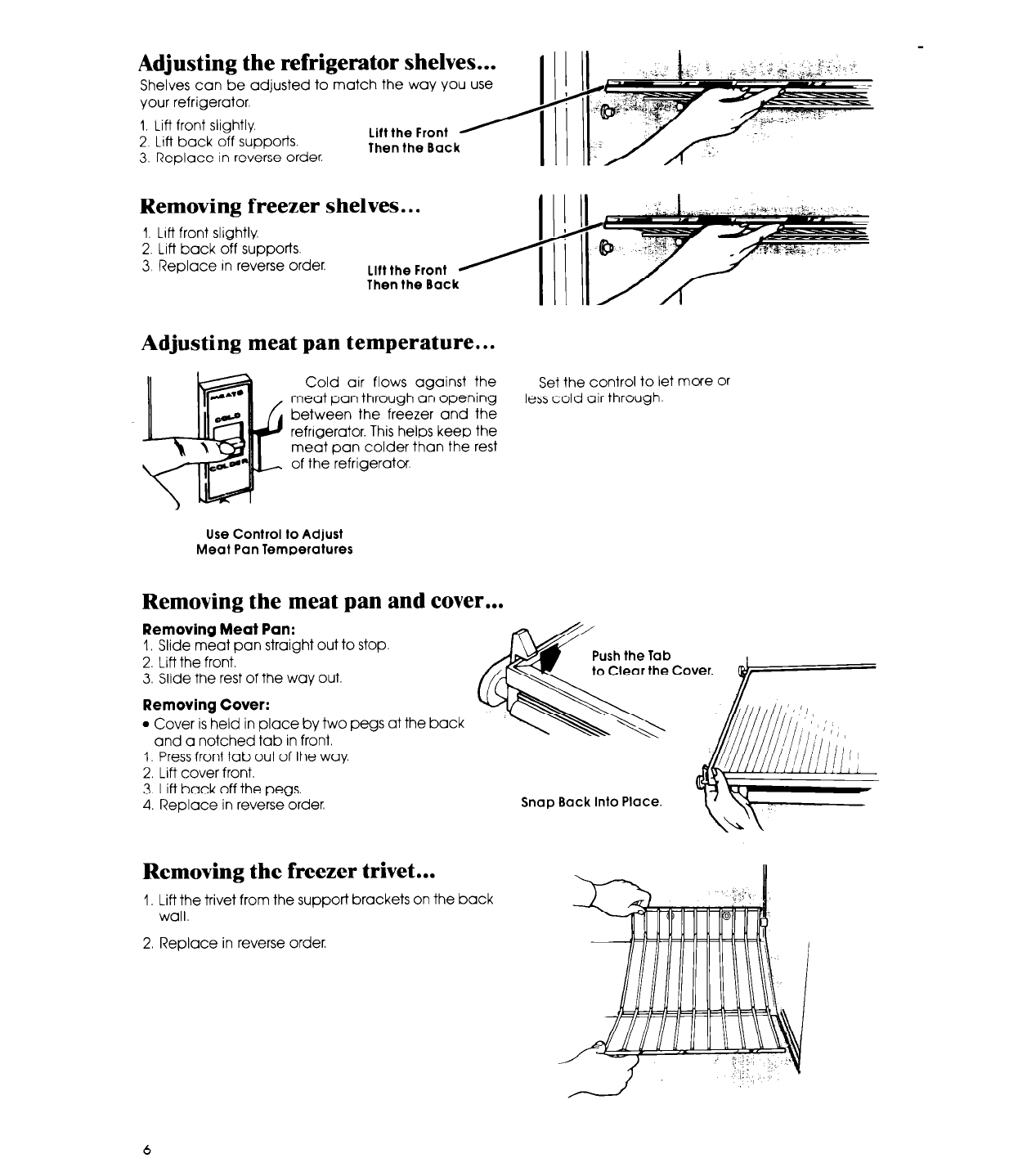 erator, clean it, move shelves and adjust con-