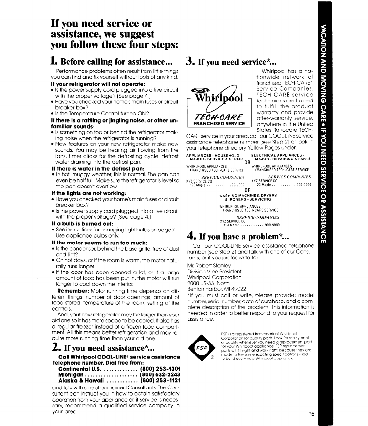 Call Whirlpool COOL-LINE! service assistance