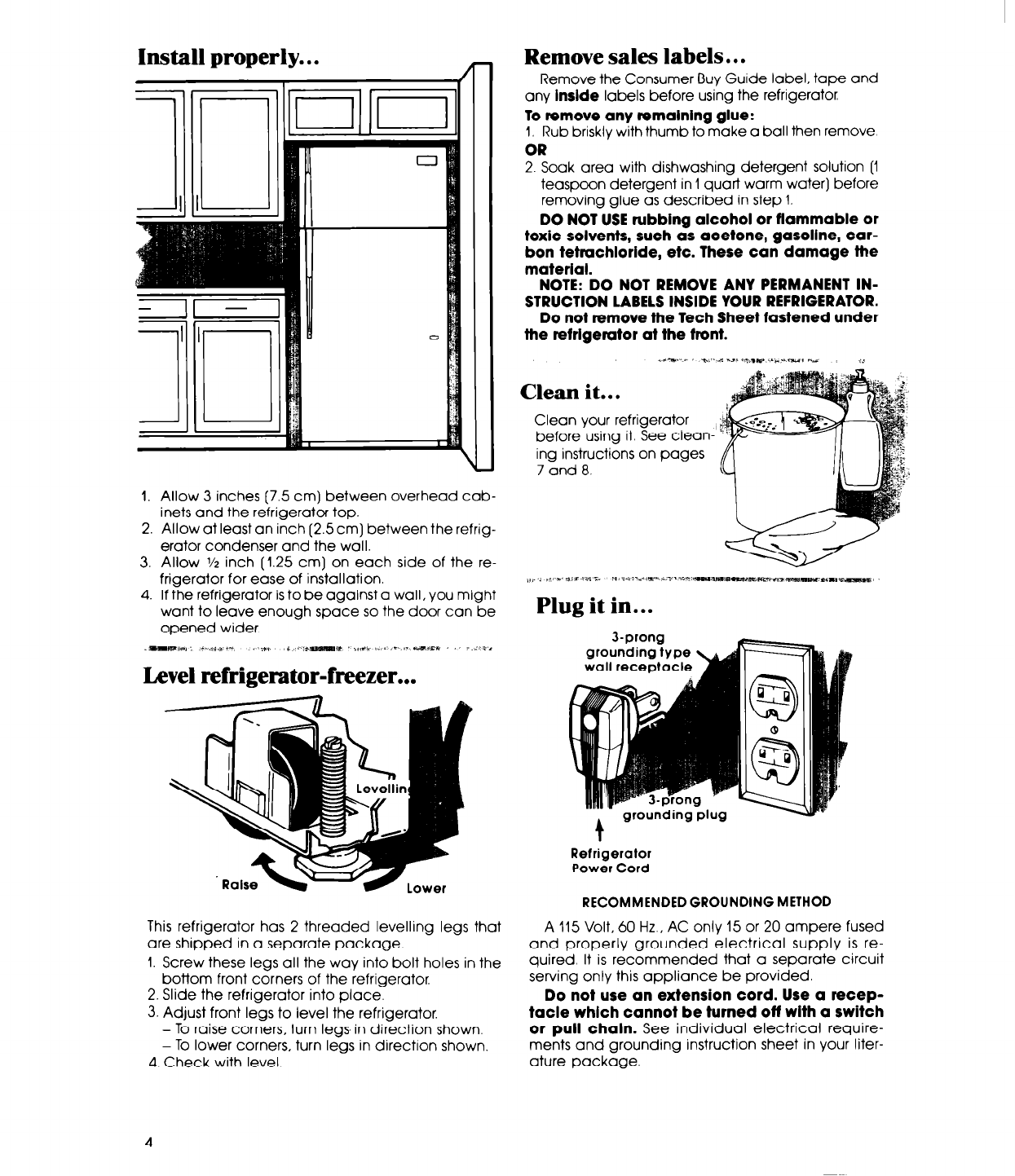 2. Allow at least an inch (2.5 cm) between the refrig-
