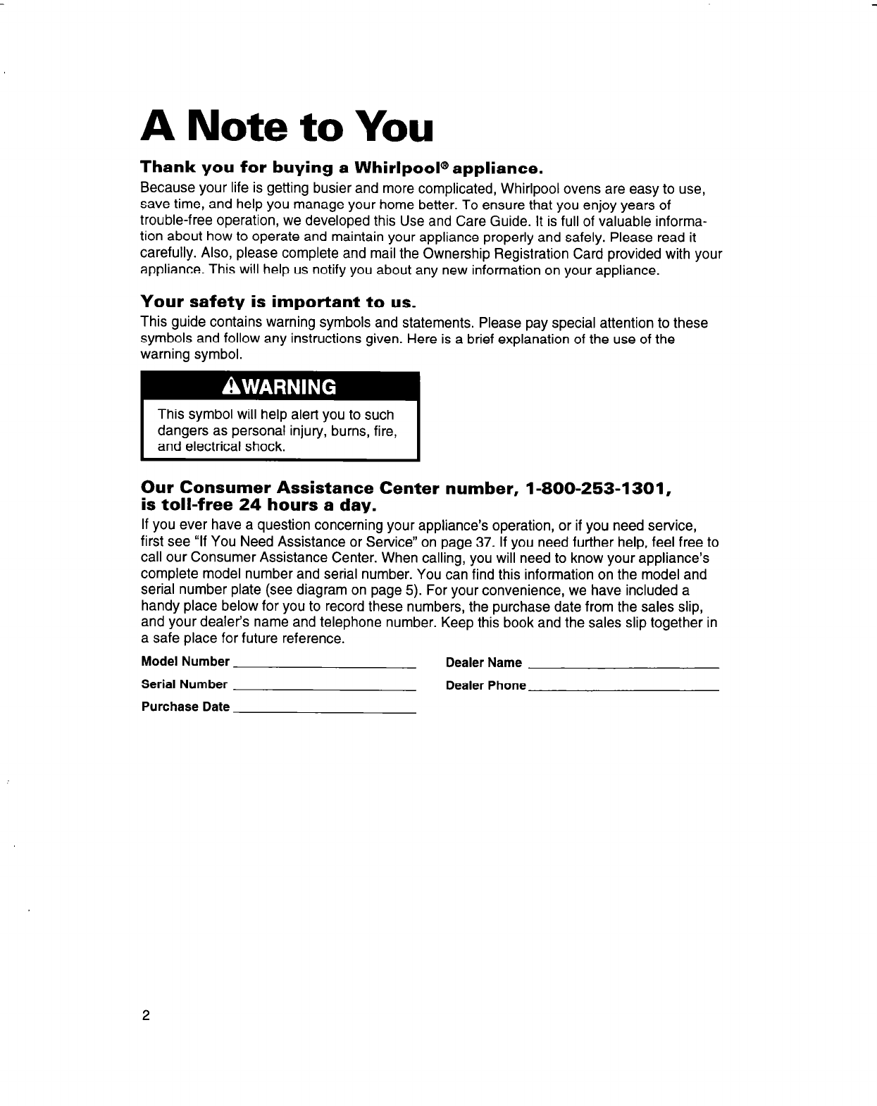 trouble-free operation, we developed this Use and Care Guide. It is full of valuable informa-