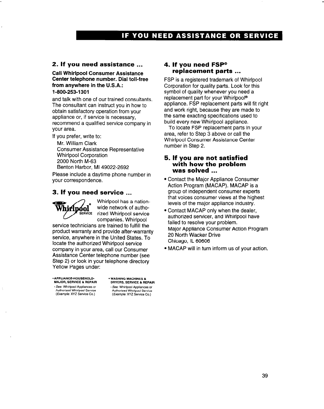 call our Consumer Assistance Center. When calling, you will need to know your appliance’s