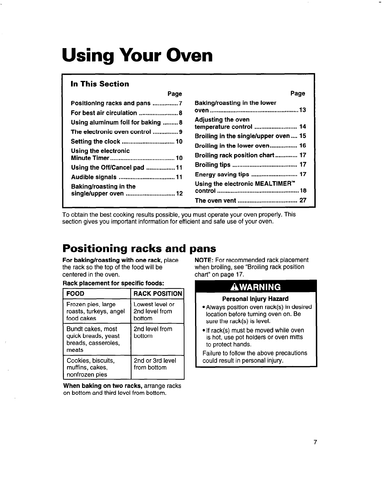 Your Oven . . . . . . . . . . . . . . . . . . . 32
