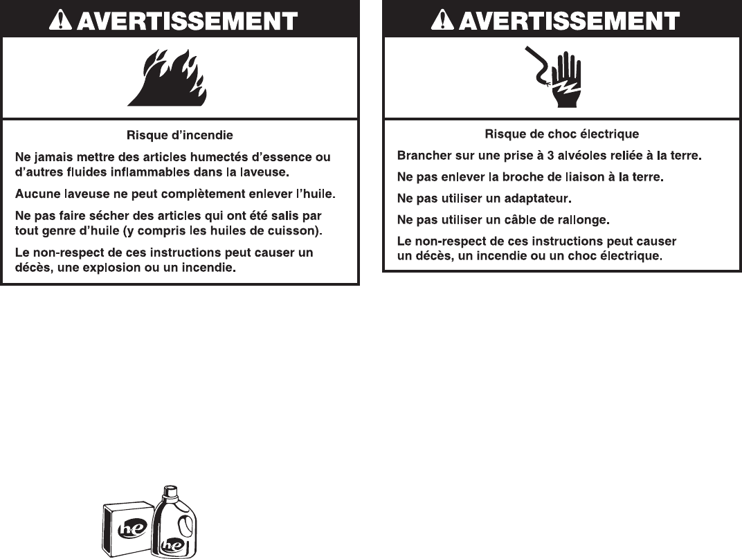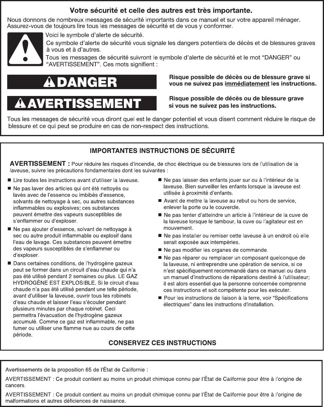 SÉCURITÉ DE LA LAVEUSE ................................................................. 19