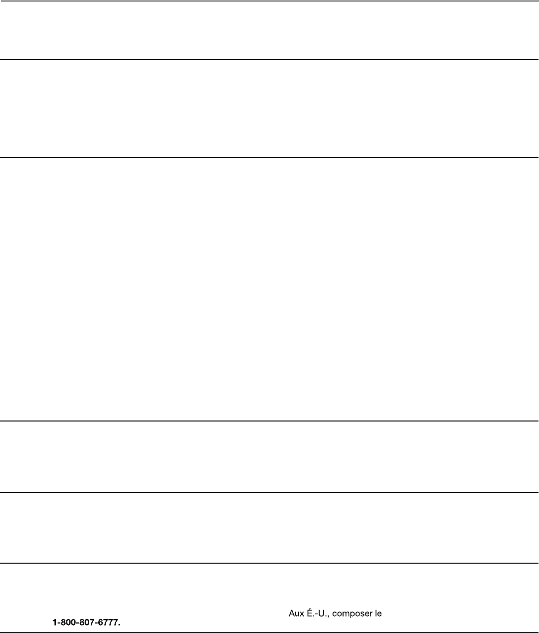Lors d’un appel, veuillez connaître la date d’achat et les numéros au complet de modèle et de série de votre appareil.
