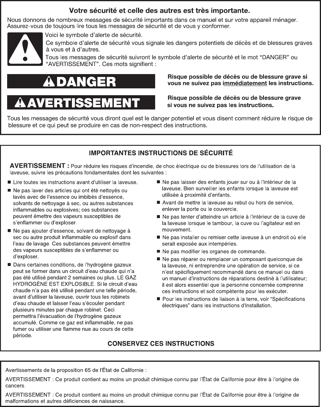 SÉCURITÉ DE LA LAVEUSE ......................................17