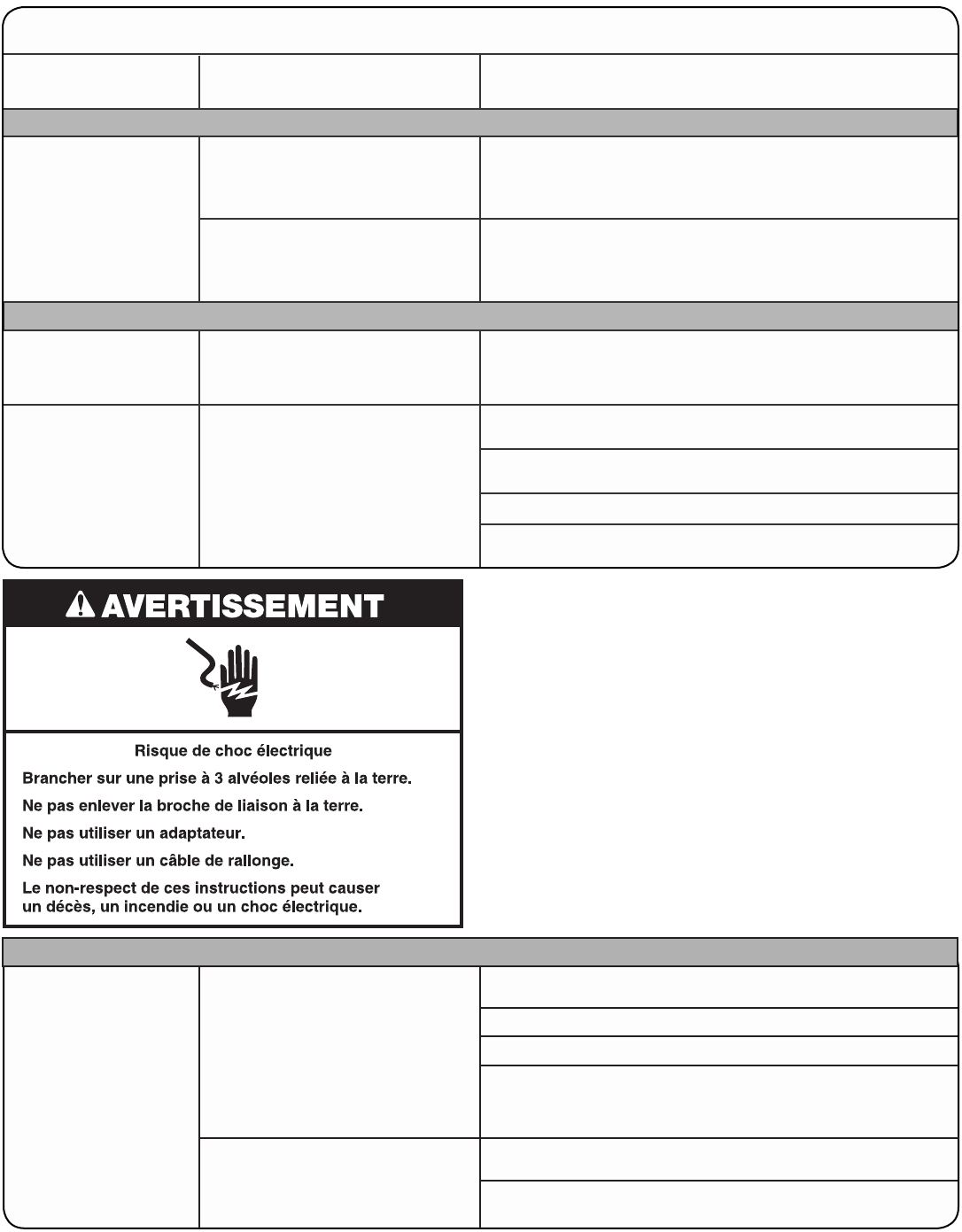 Avant de faire un appel pour assistance ou service, veuillez vérier la section “Dépannage” ou consulter