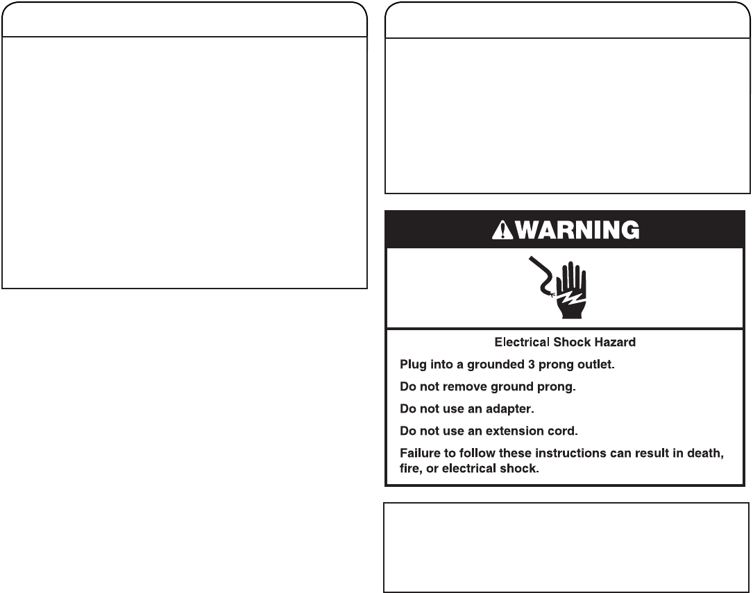 When calling, please know the purchase date and the complete model and serial number of your appliance.