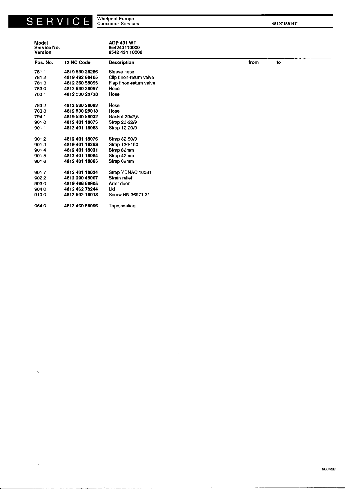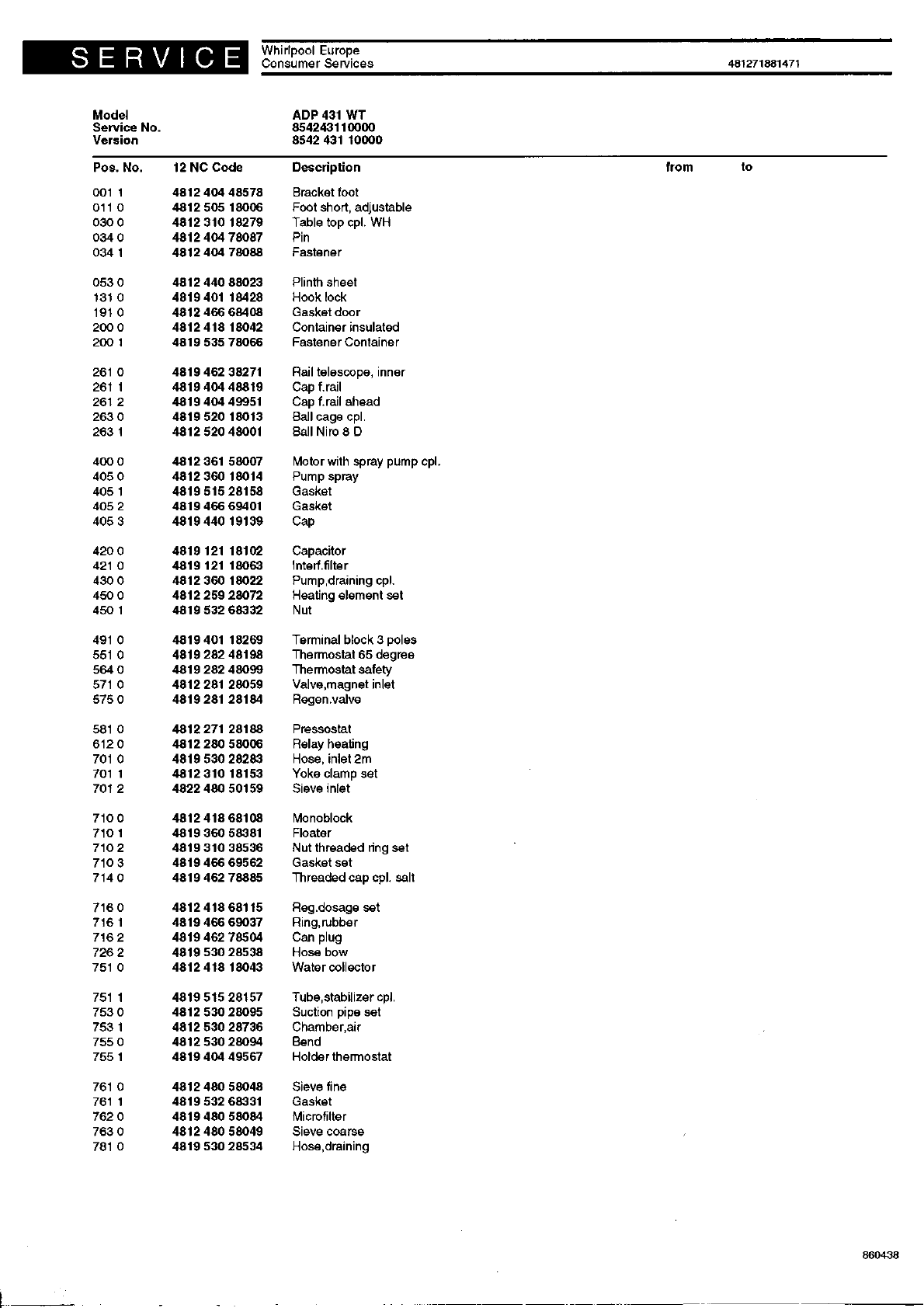 Exploded view 4812 718 60438