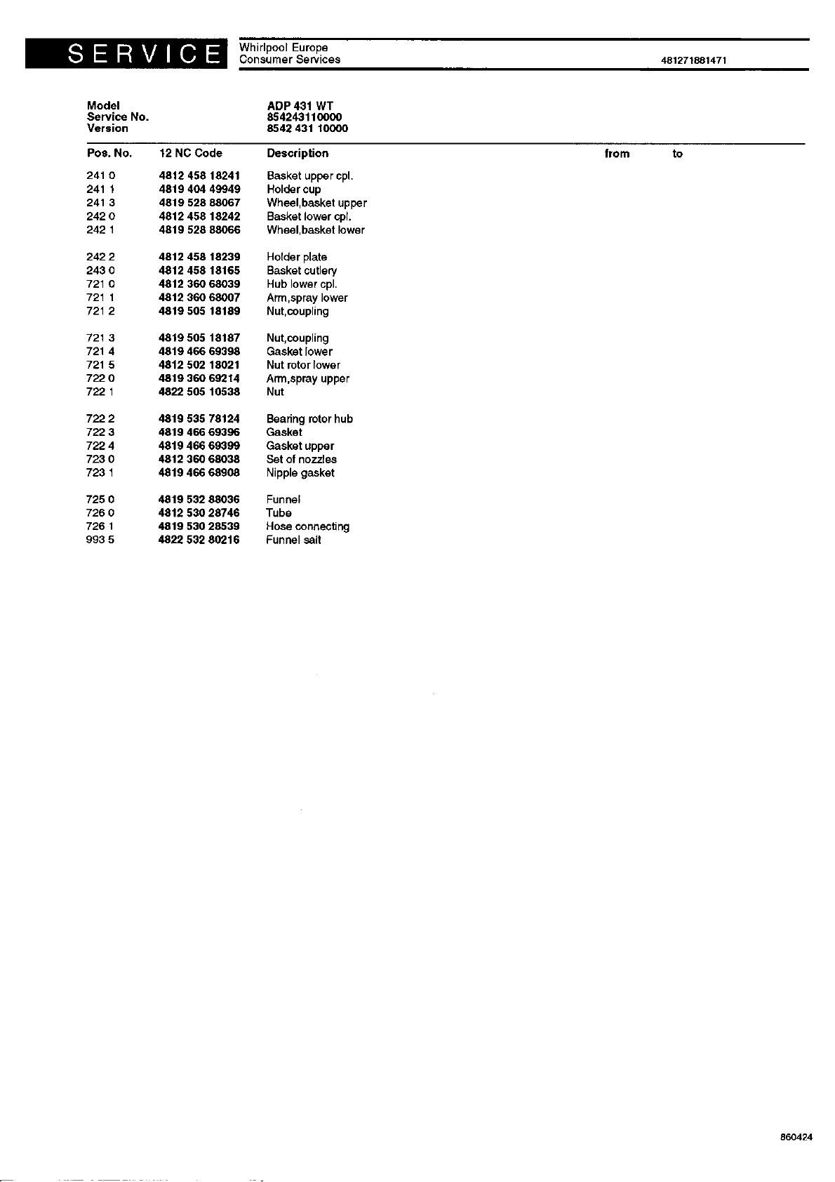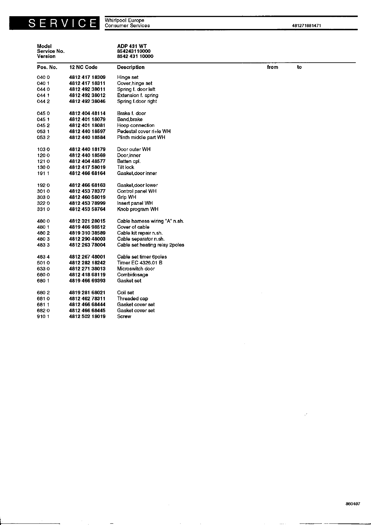 Spare parts list 481271881471
