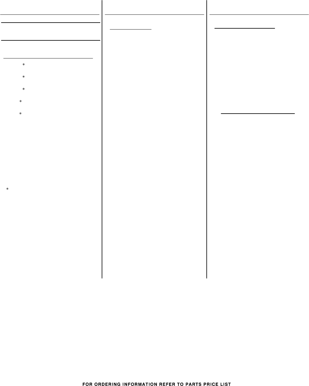 Parts Not Illustrated and