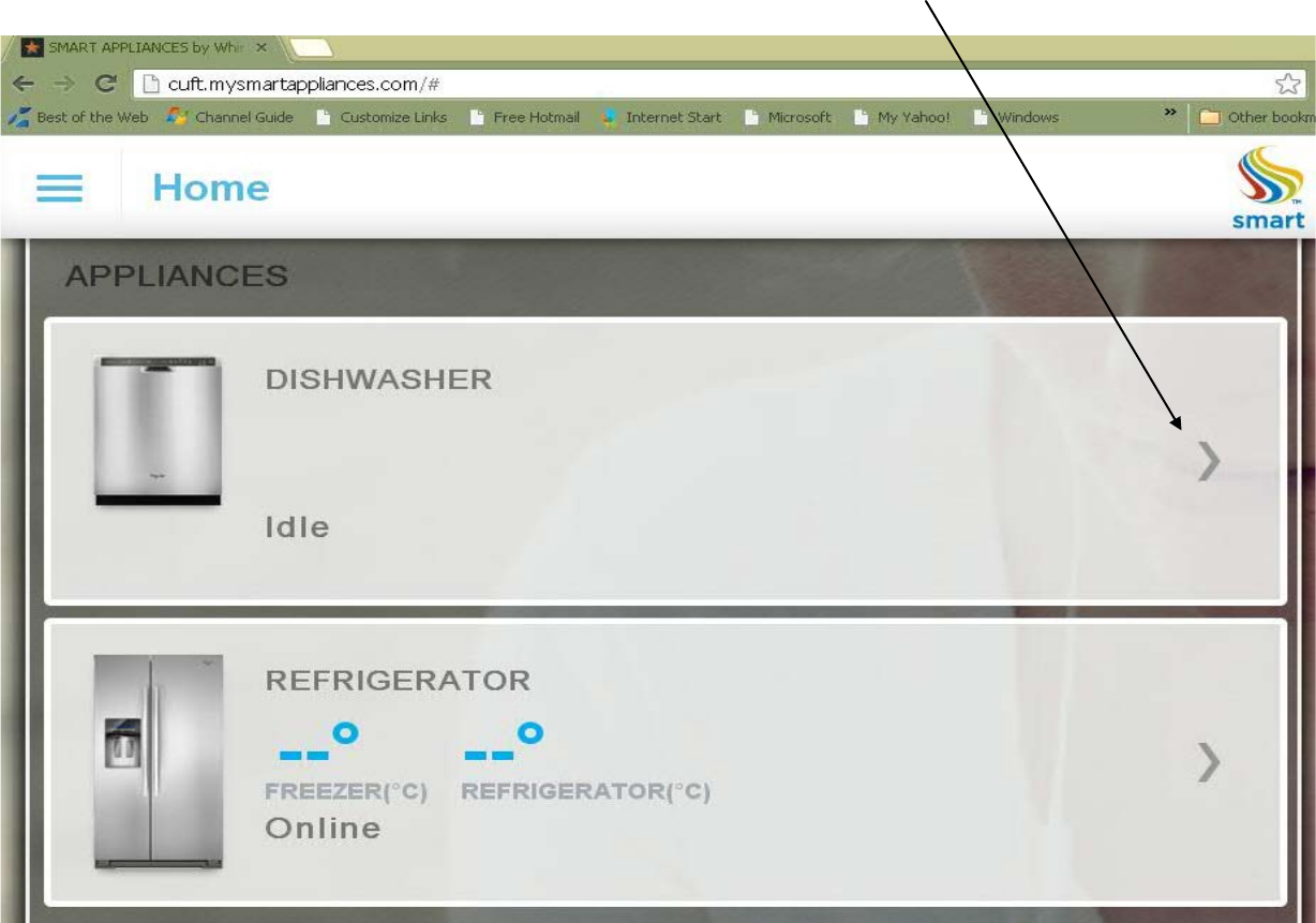 At the web site after you claim your appliances – Select an Appliance like Dishwasher “>”