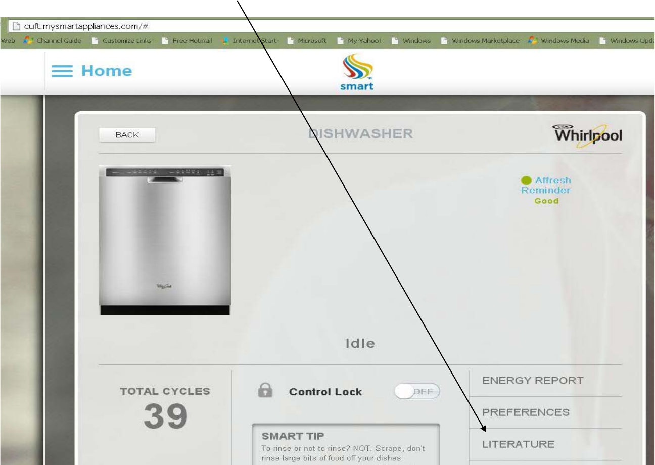 At the Dishwasher page select the “Literature” box