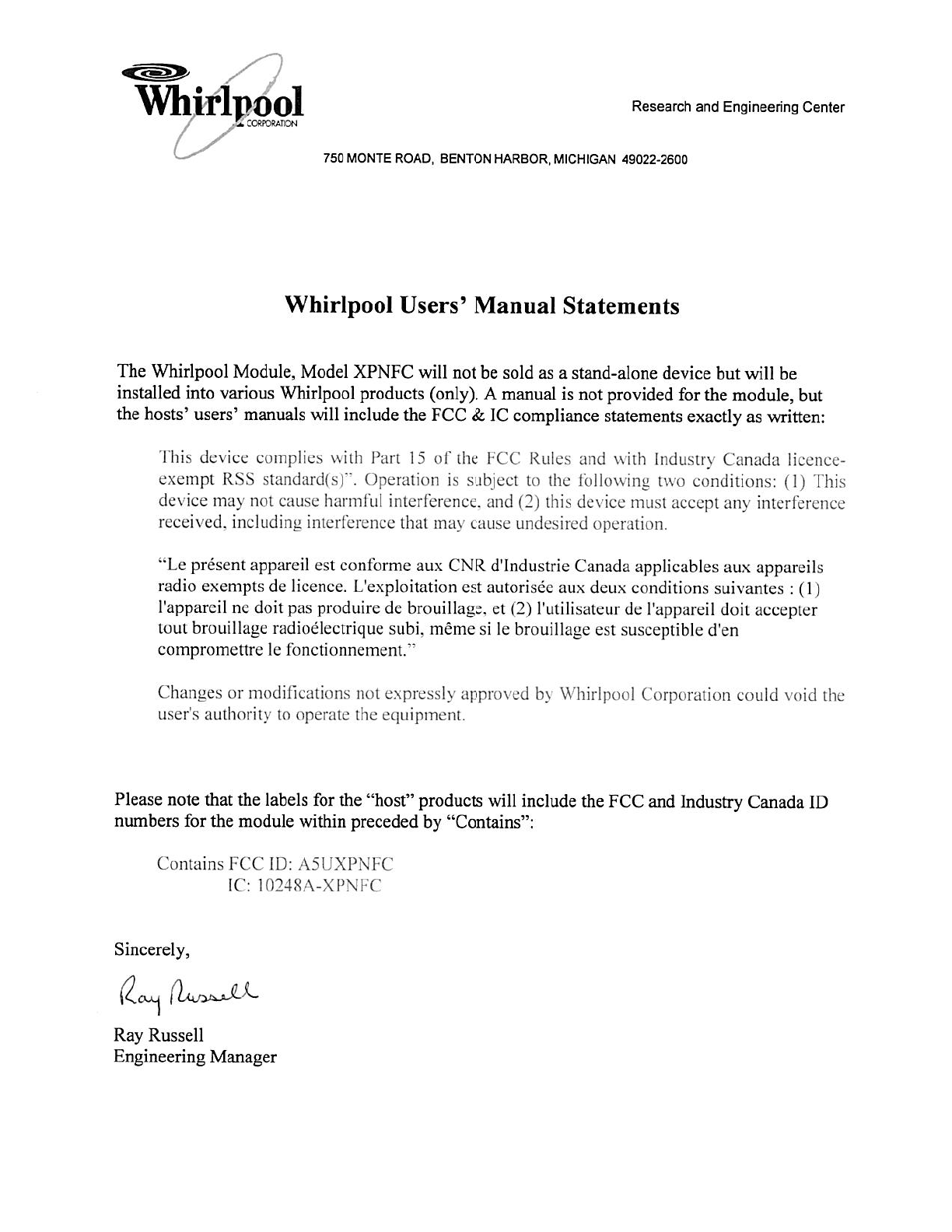Whirlpool XPNFC NFC Module User Manual Scanned