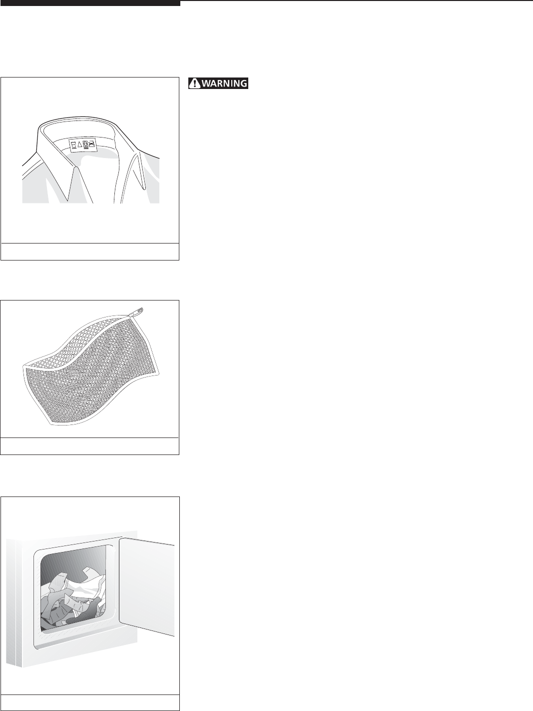 these areas could result in inefficient drying and possible fire. See Care and
