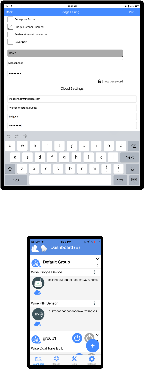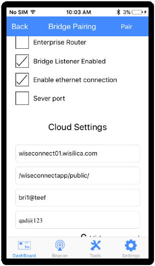 The WiseMesh BLE/WiFi GW is configured through a mobile application based user interface for WiFi