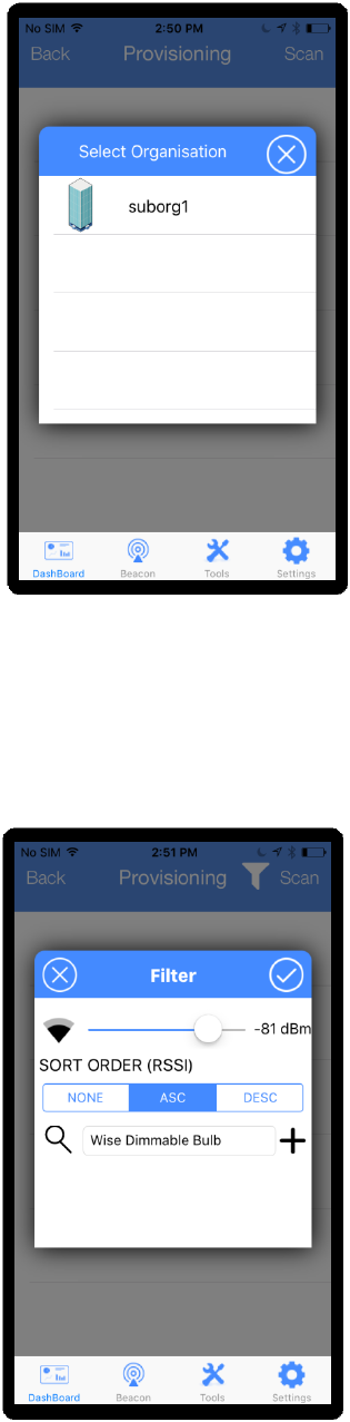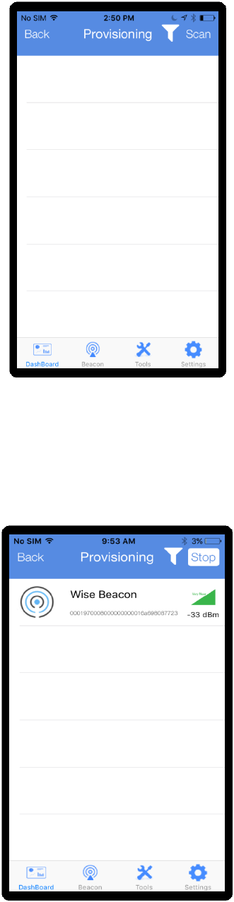 e) When the Wise Beacon appears on scanned list, swipe leftwards.