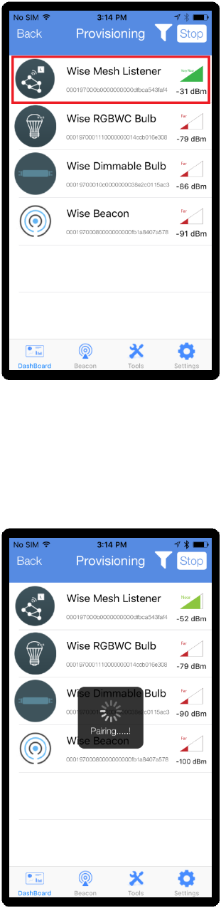 d) When Wise Listener device appears in the scanned list , swipe leftwards on the device