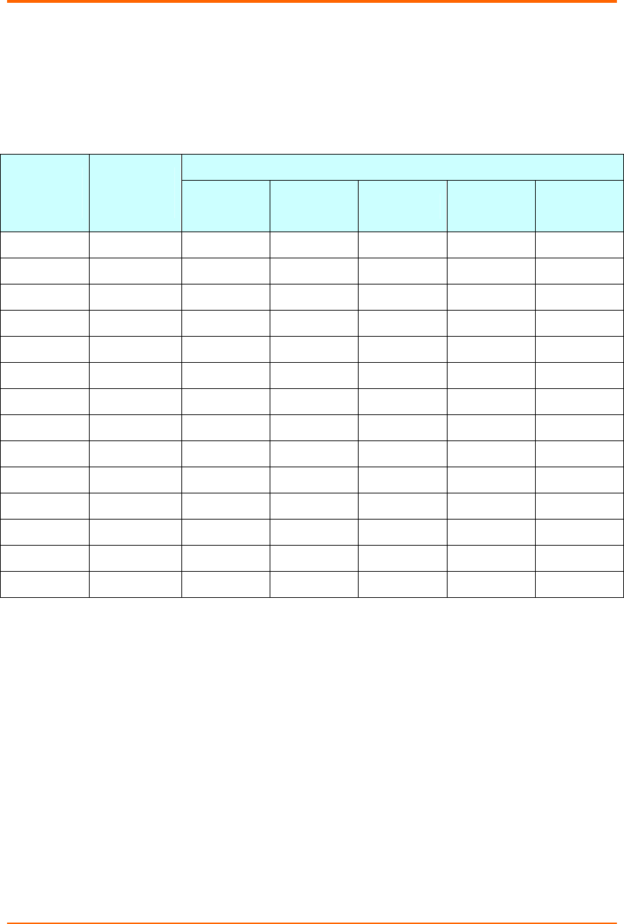shown in the table below, as appropriate for the various areas or regulatory agencies.