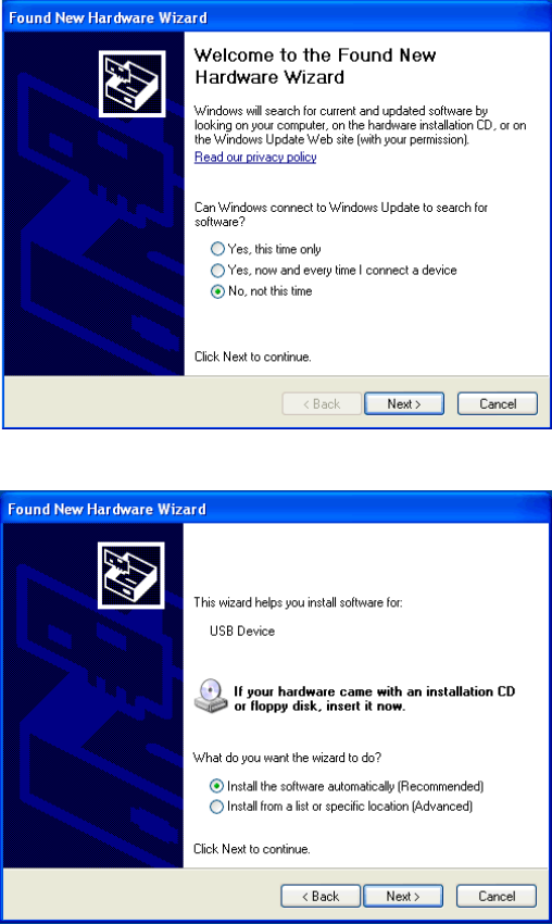 The “Found New Hardware” wizard starts.