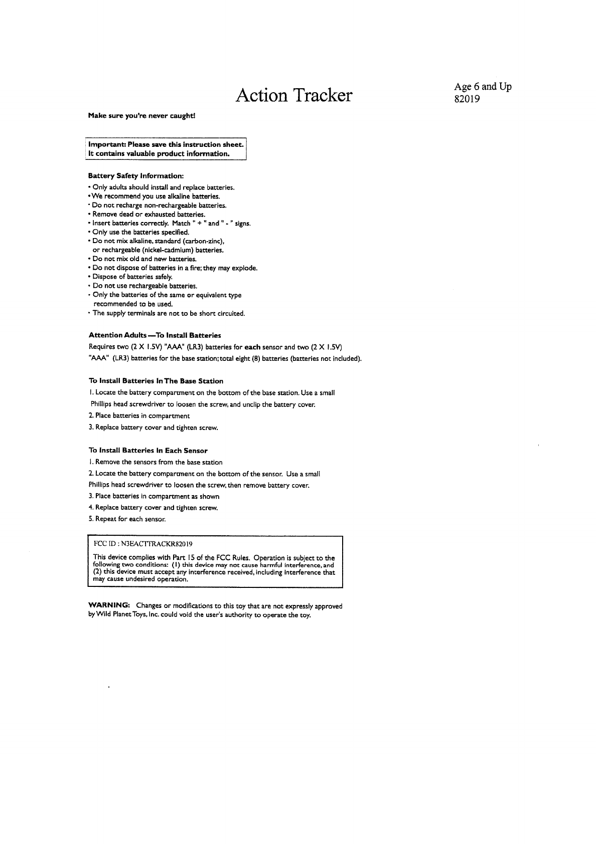 Wild Planet Entertainment ACTTRACKR82019 Toy Detector User Manual